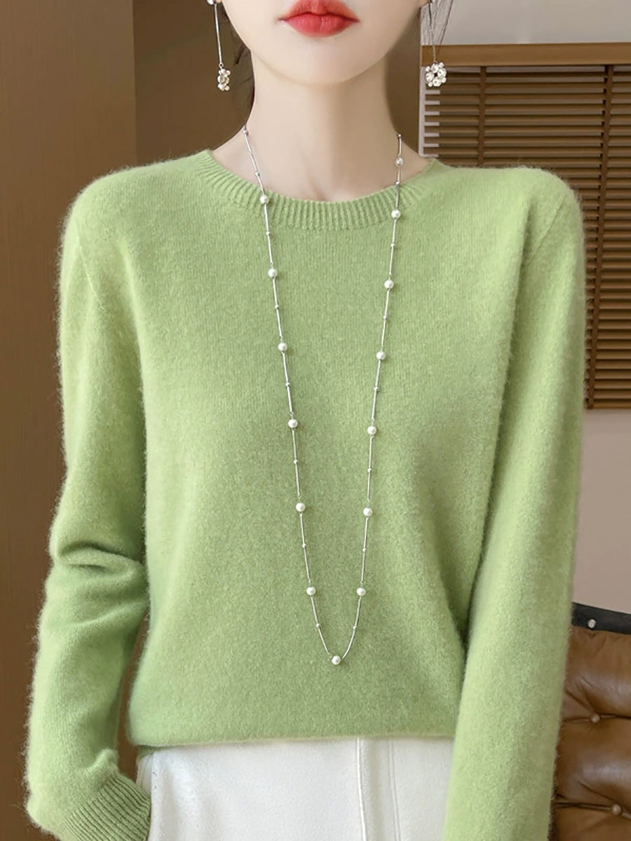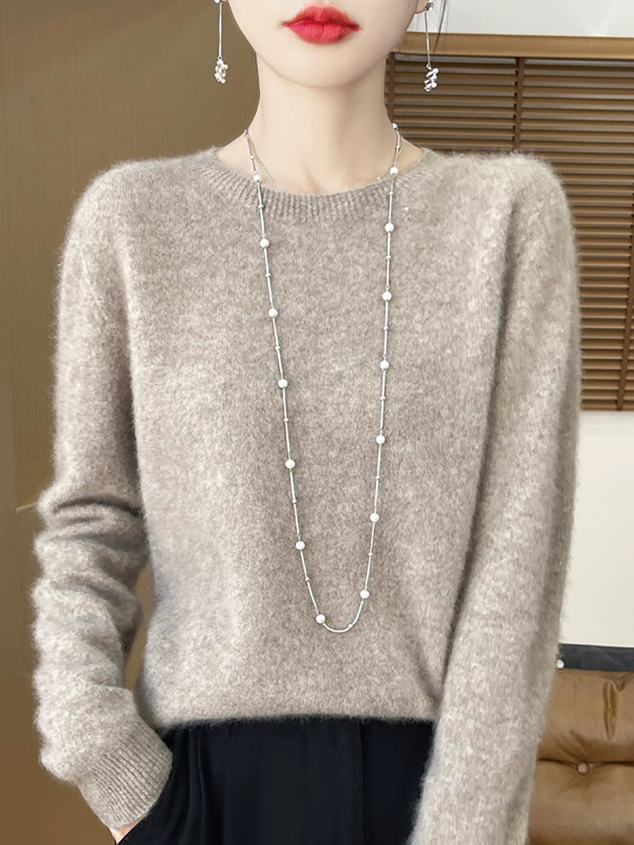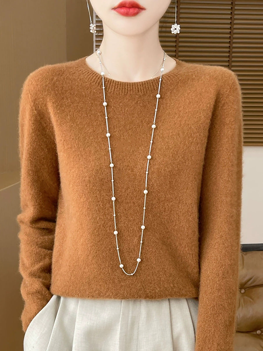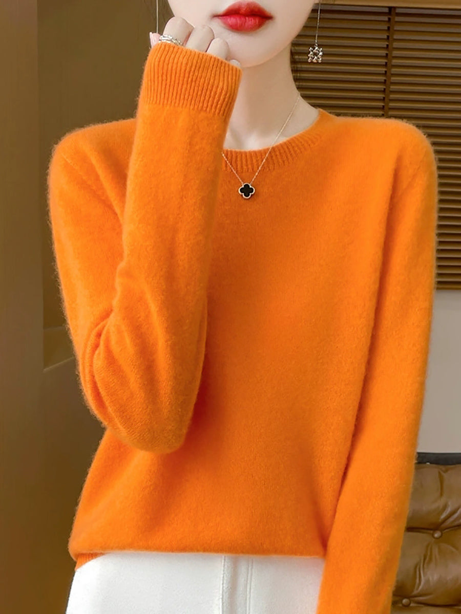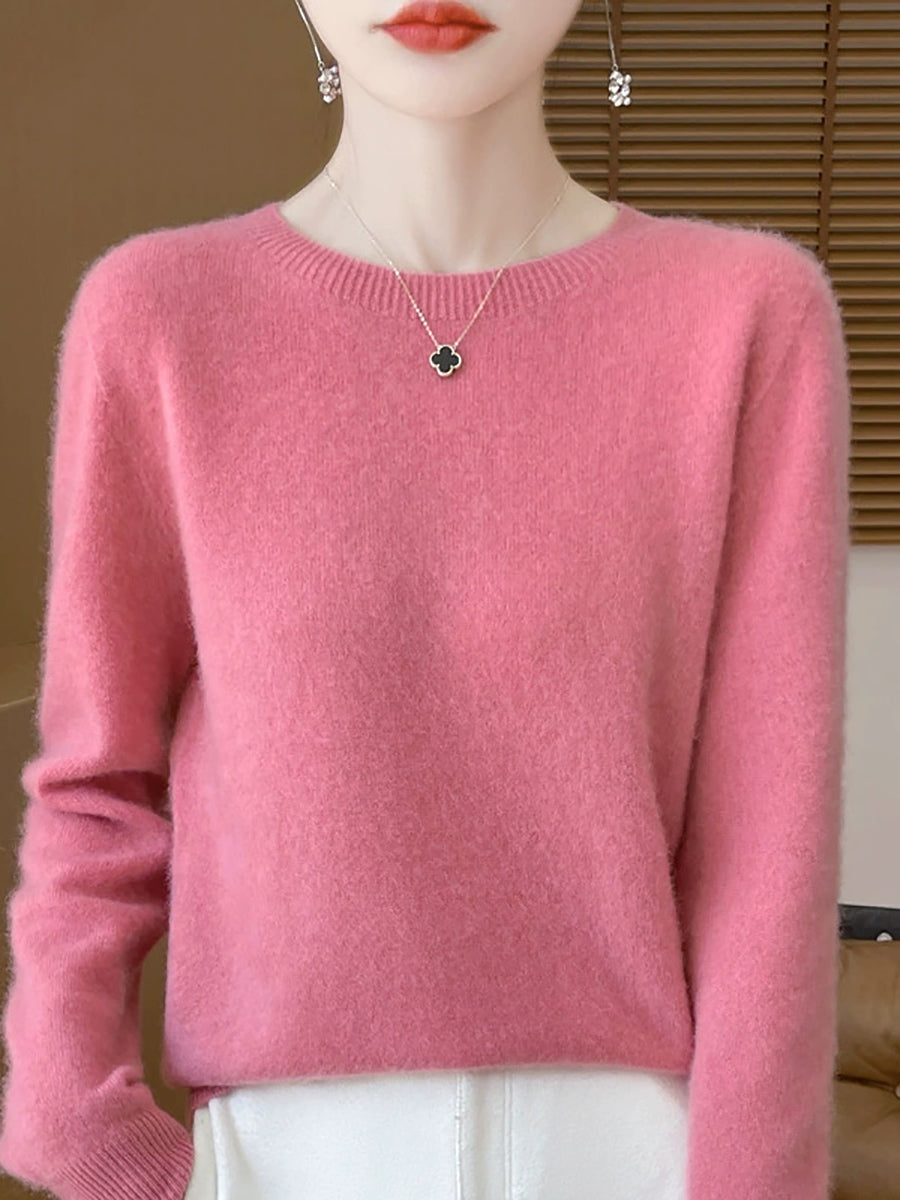 Kvinder Forårs Casual Ren Farve O-hals Sweater