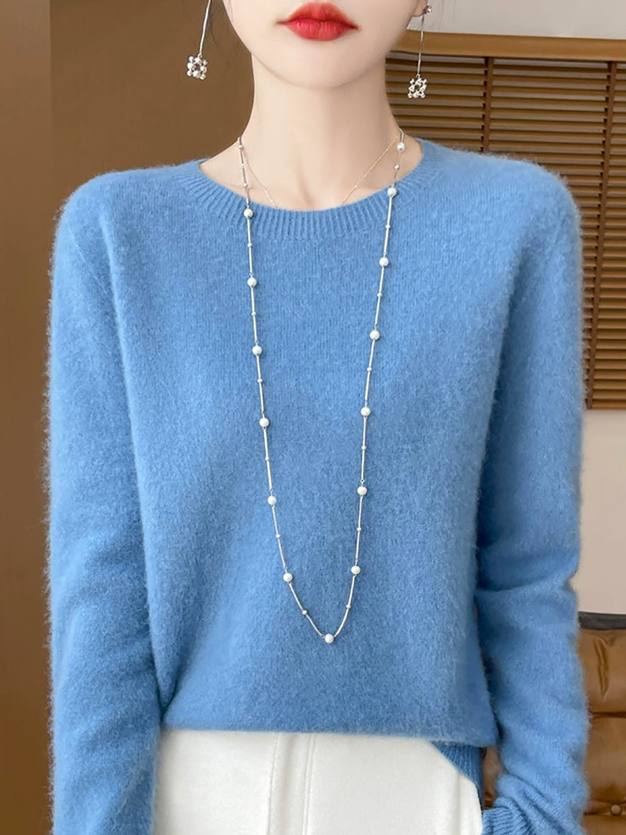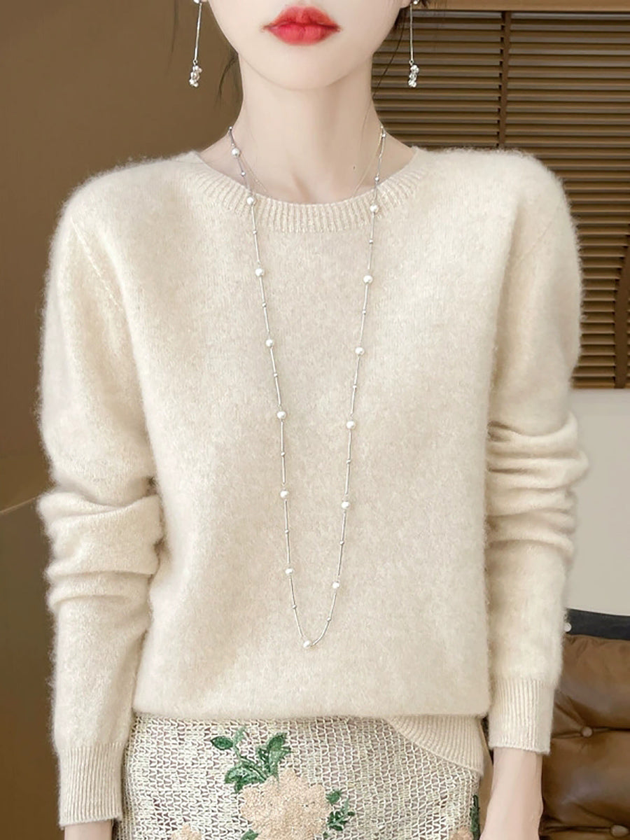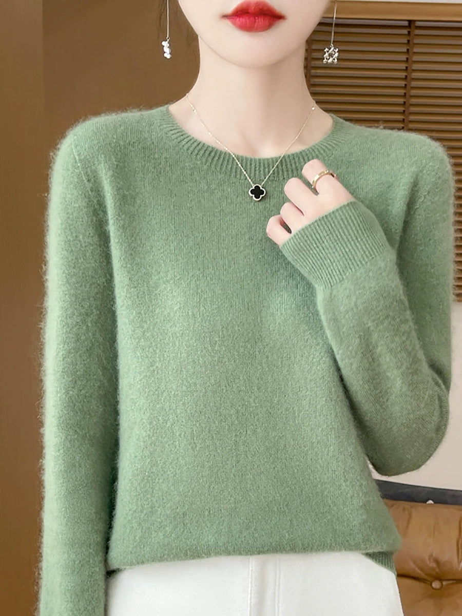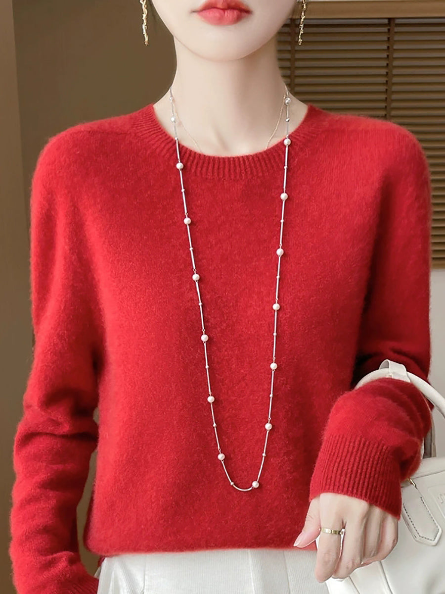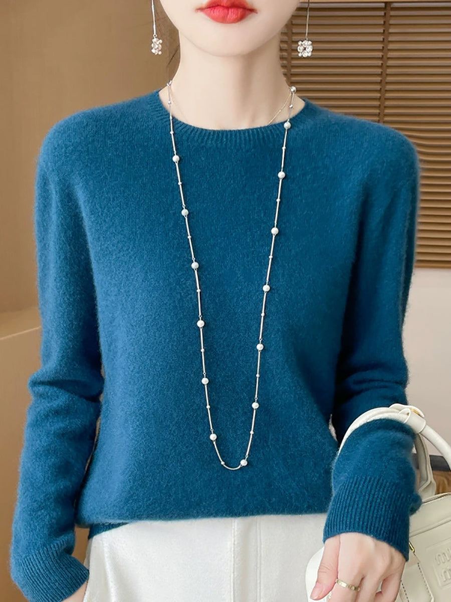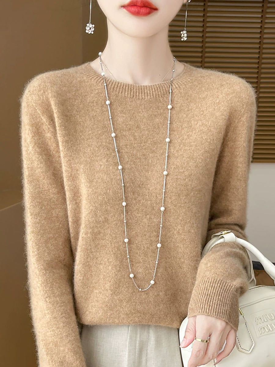 Kvinder Forårs Casual Ren Farve O-hals Sweater