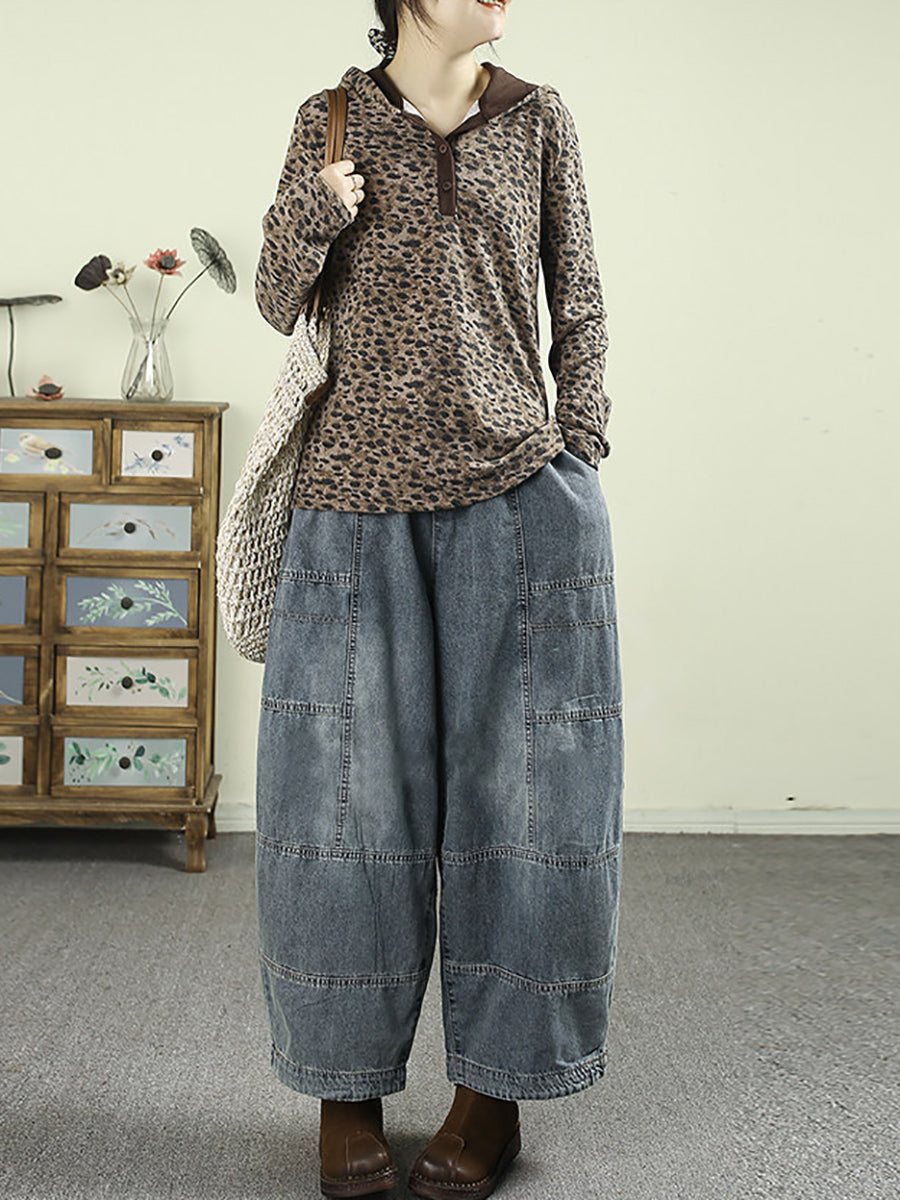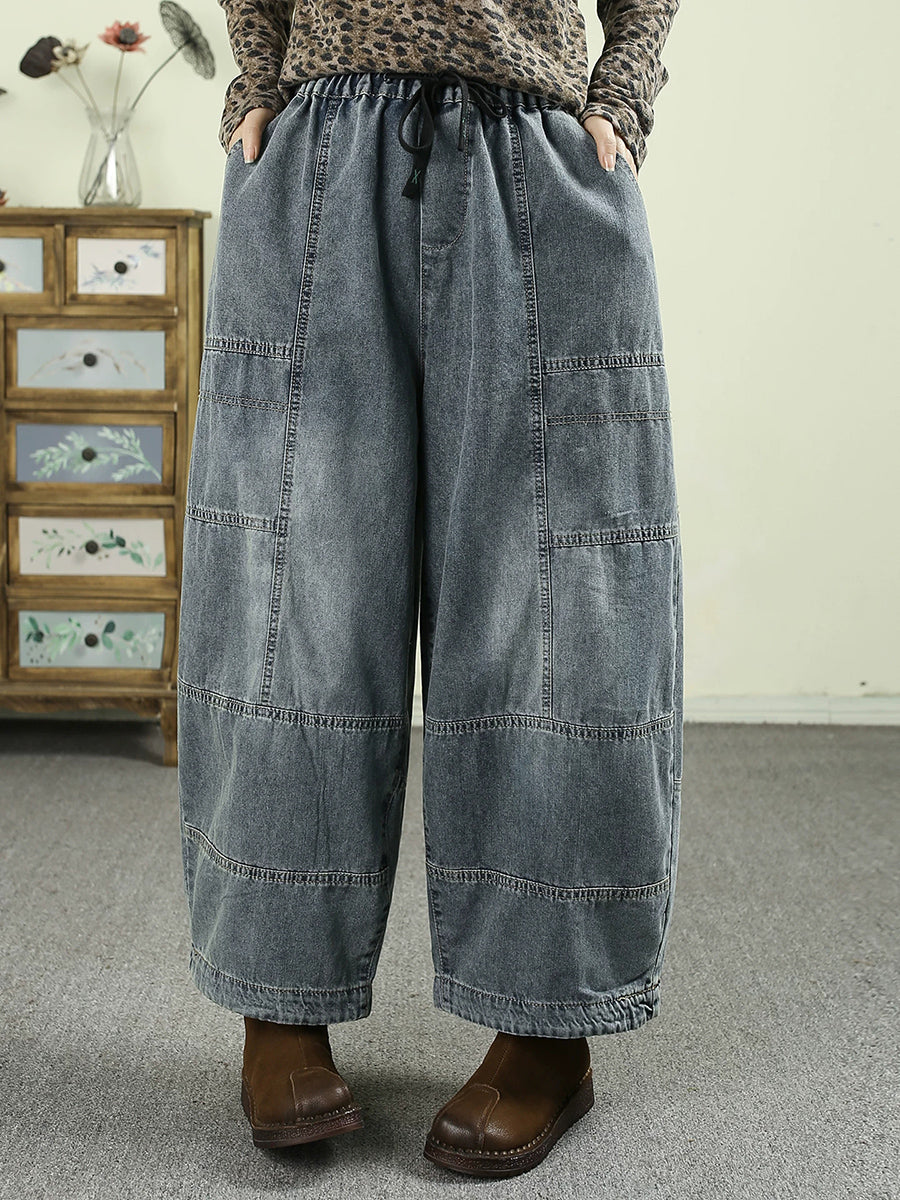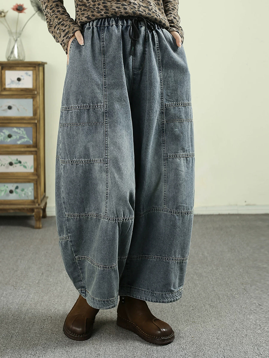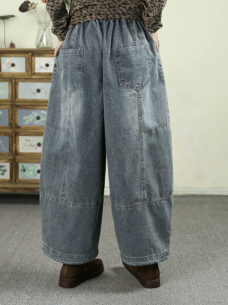 Kvinders forårsbukser med splejsede, brede ben og vintage-denim