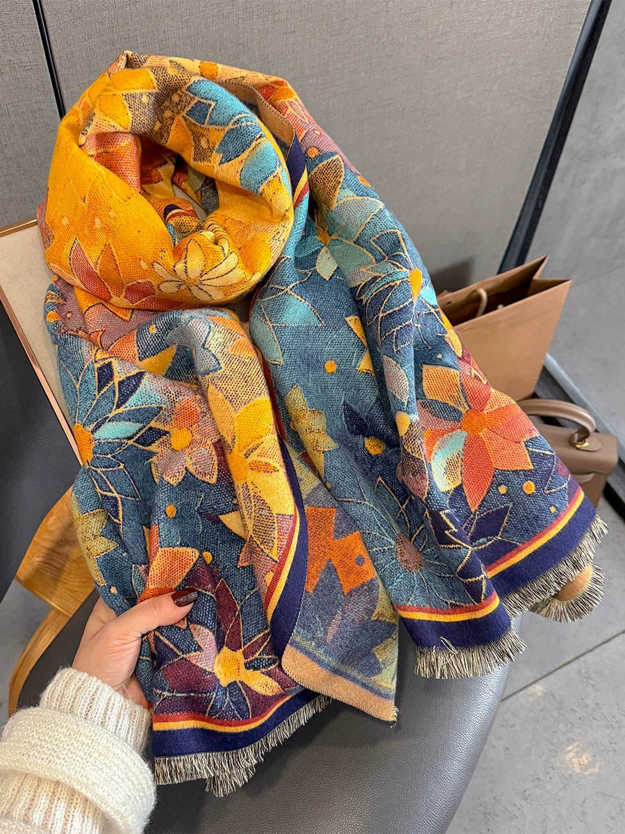 Kvinder Vintage Blomster Jacquard Sjal Tørklæde