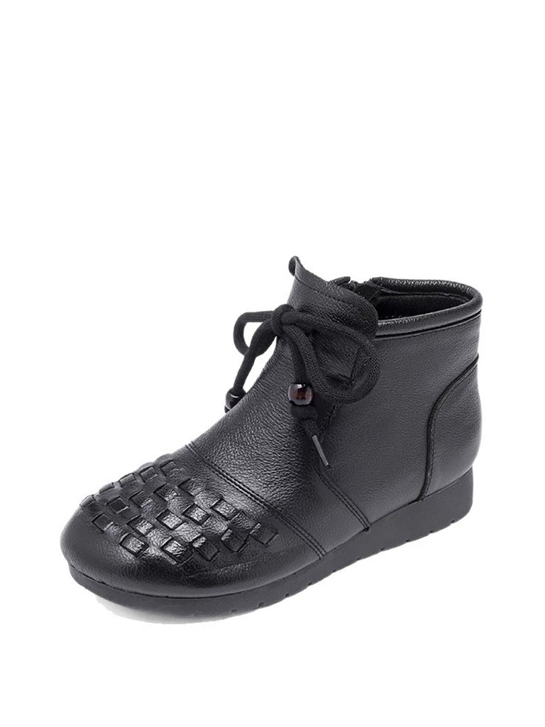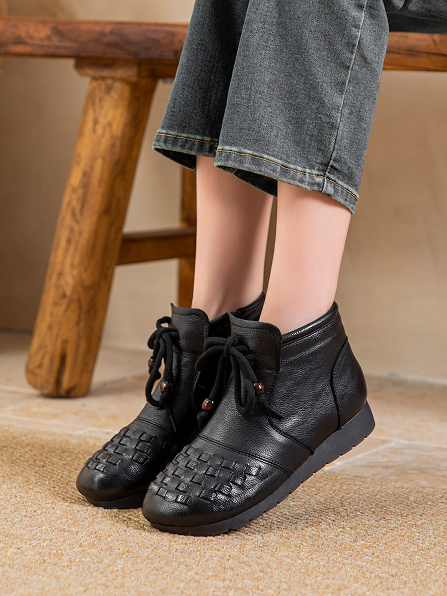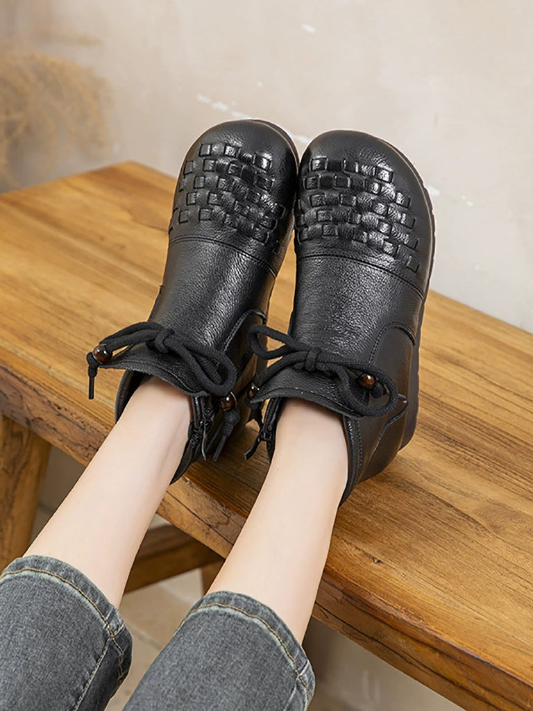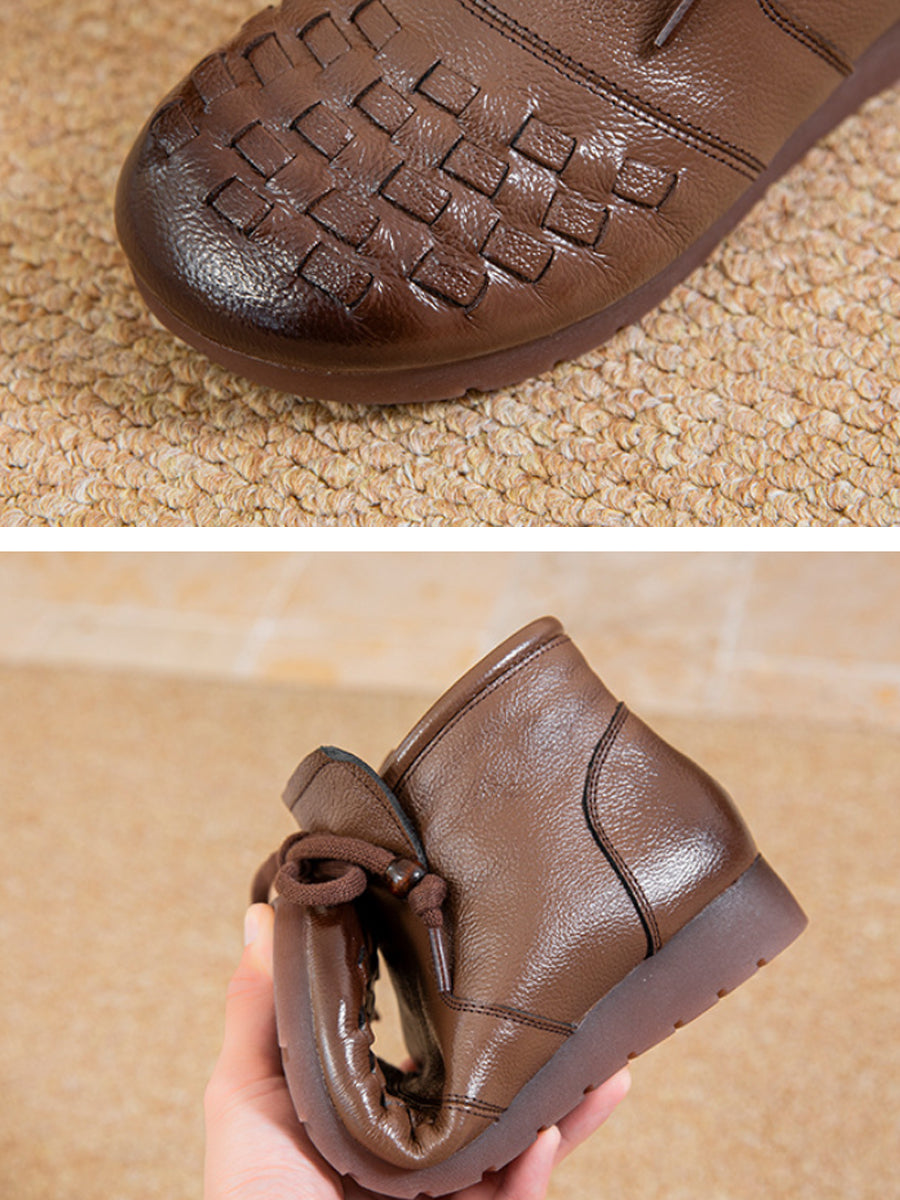 Kvinder Vintage Ægte Læder Spliced Ankelstøvler