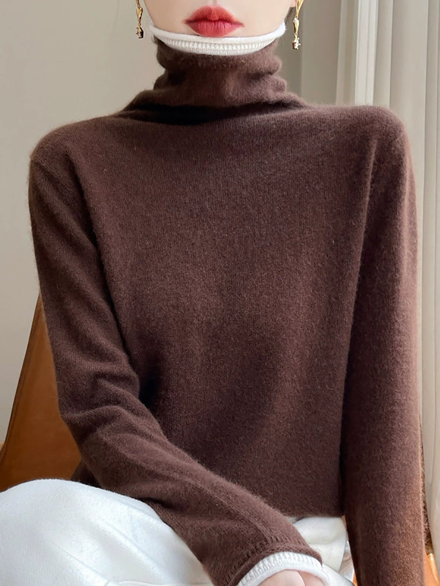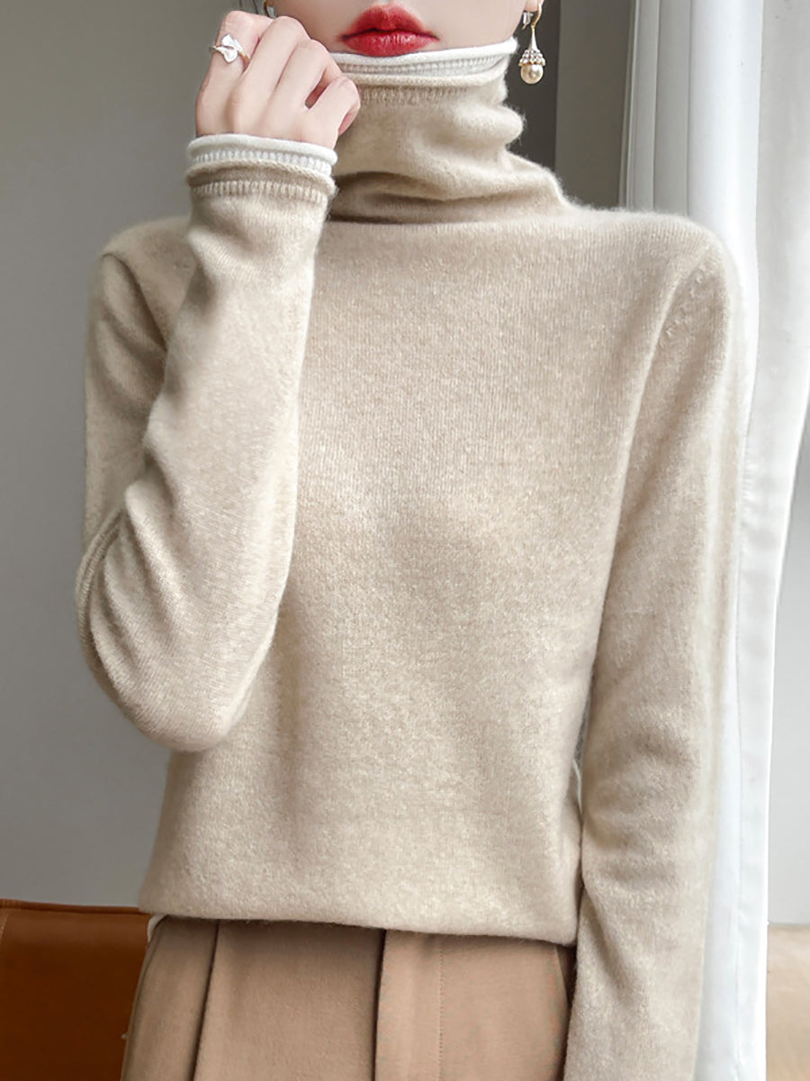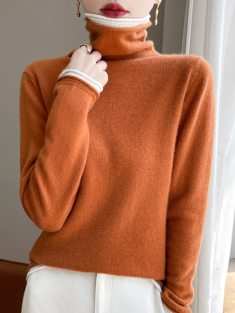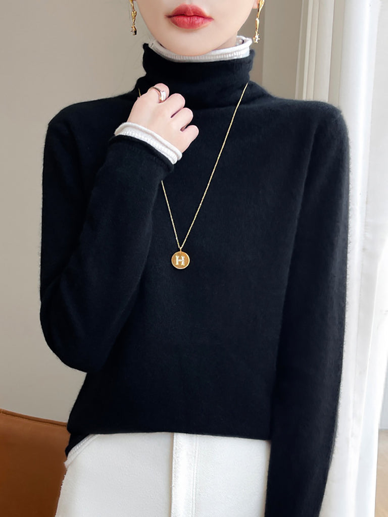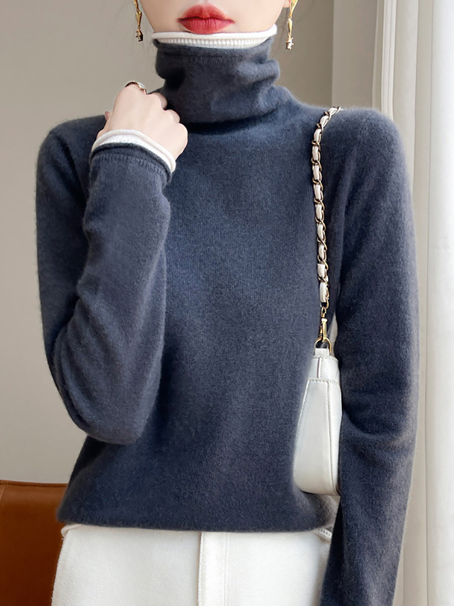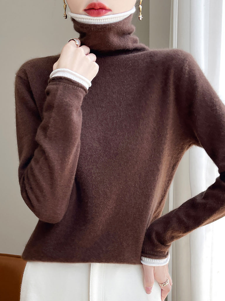 Kvinder Vinter Casual Colorblock Strikket Rullekravetrøje