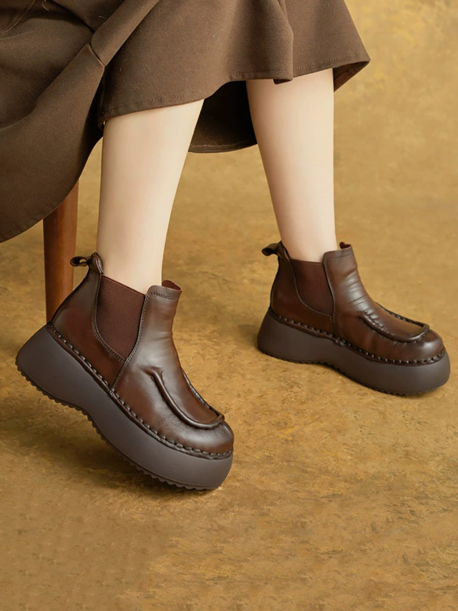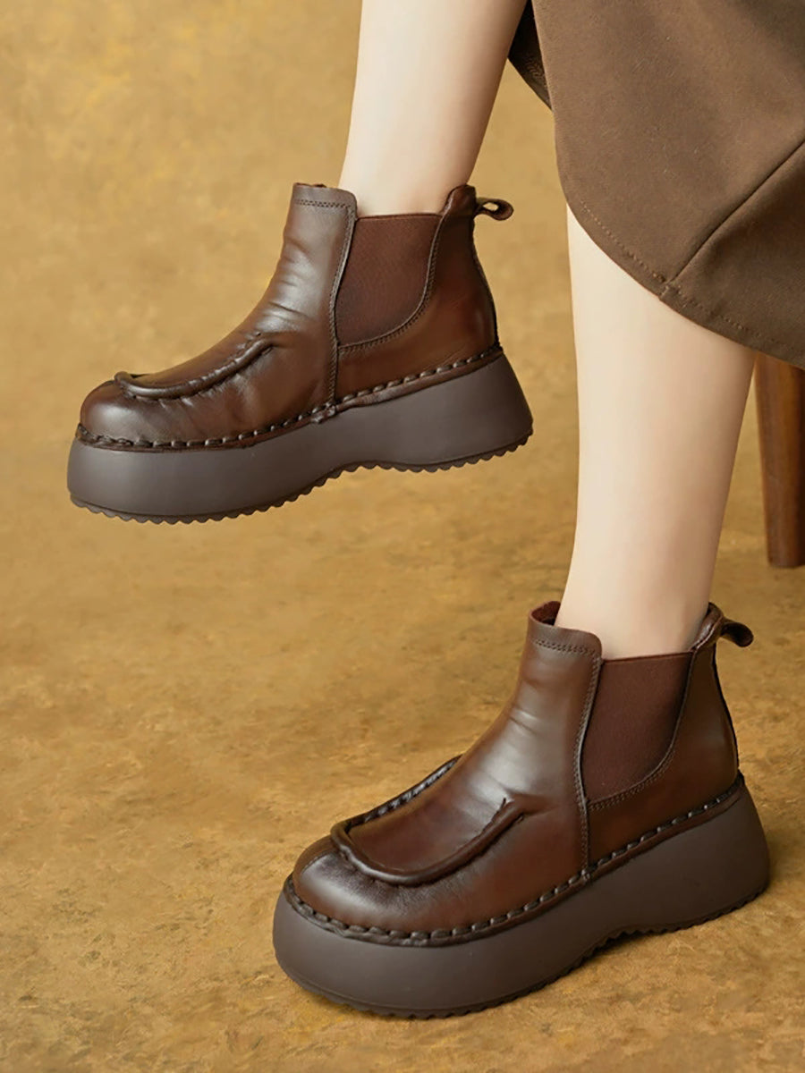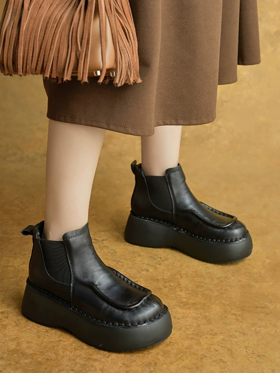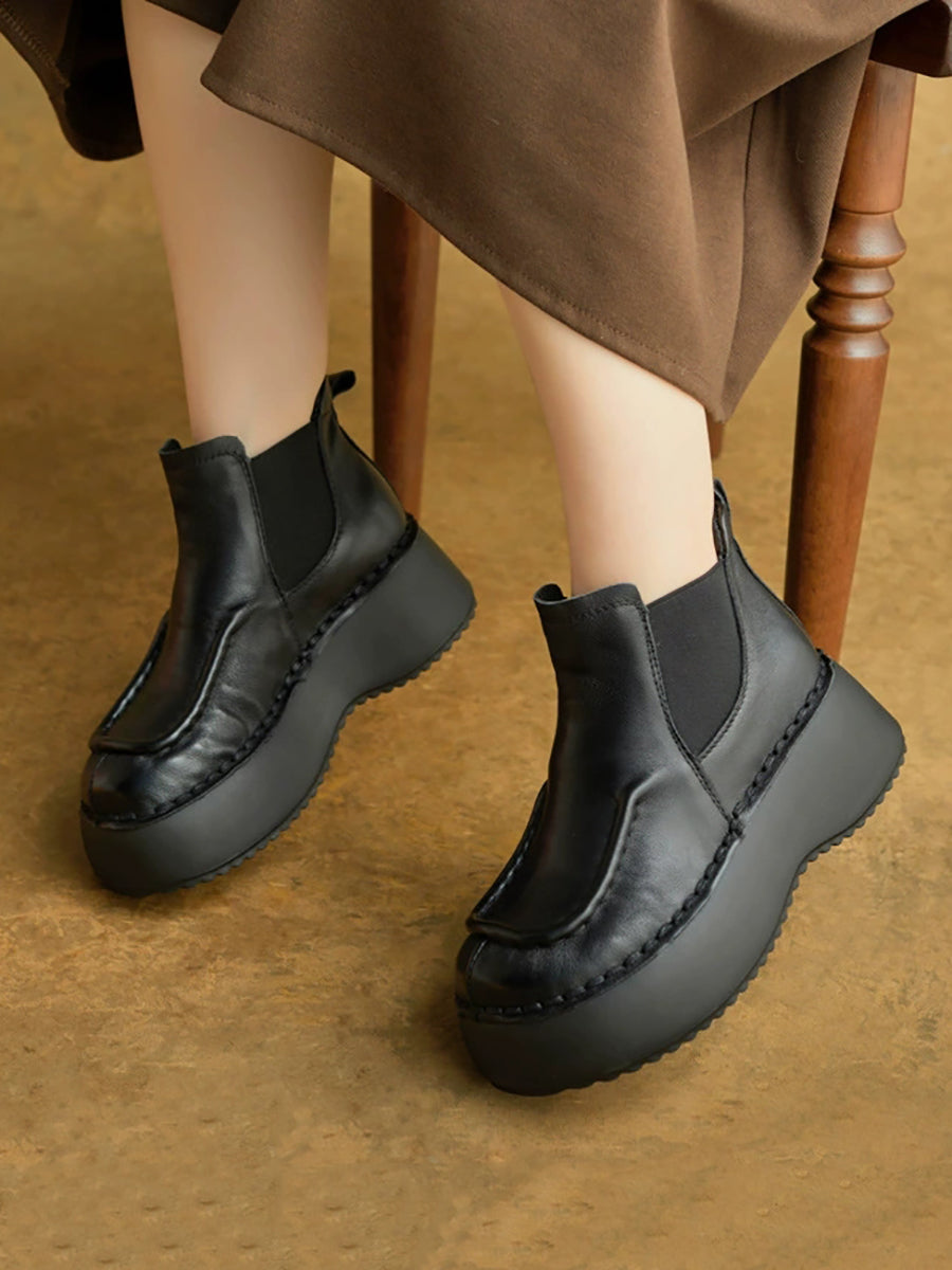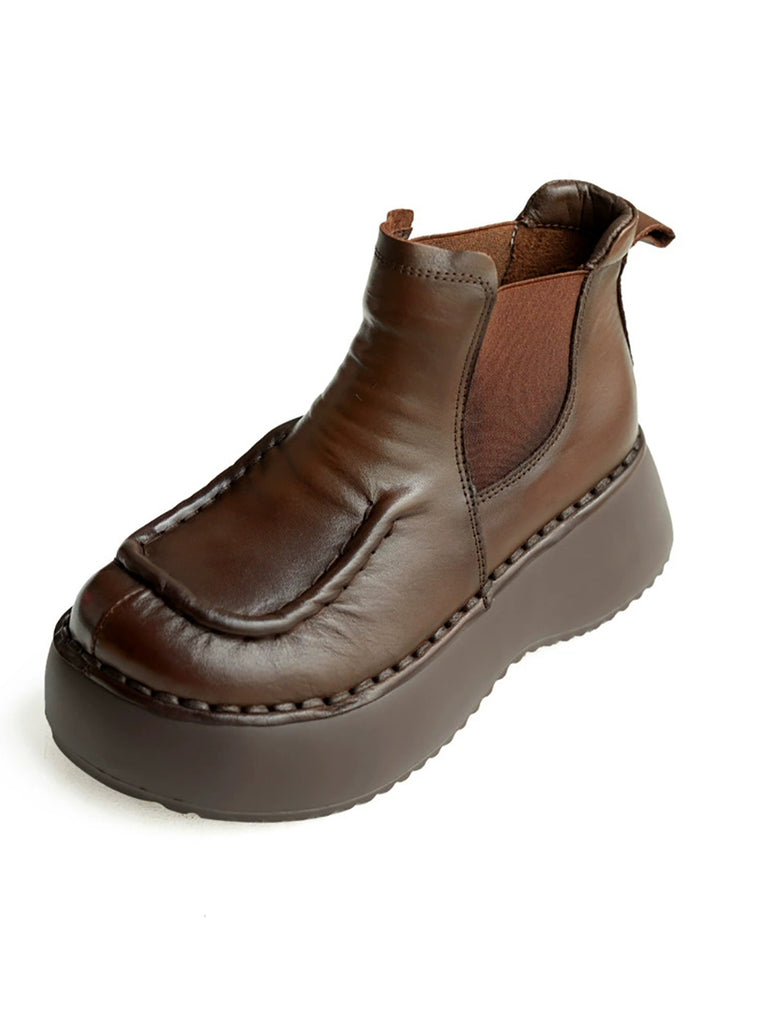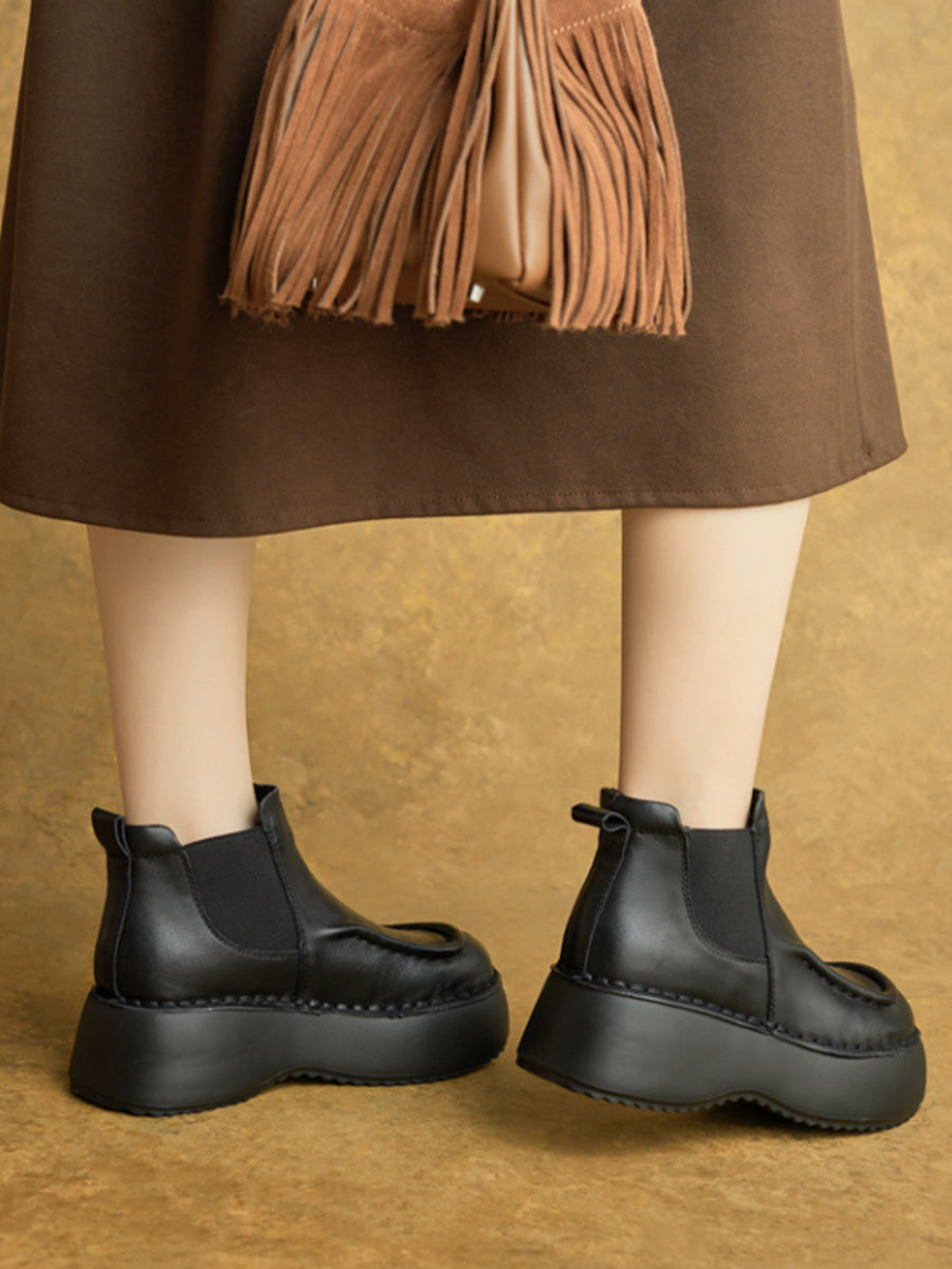 Kvinder Vinter Casual Ægte Læder Spliced Platform Støvler