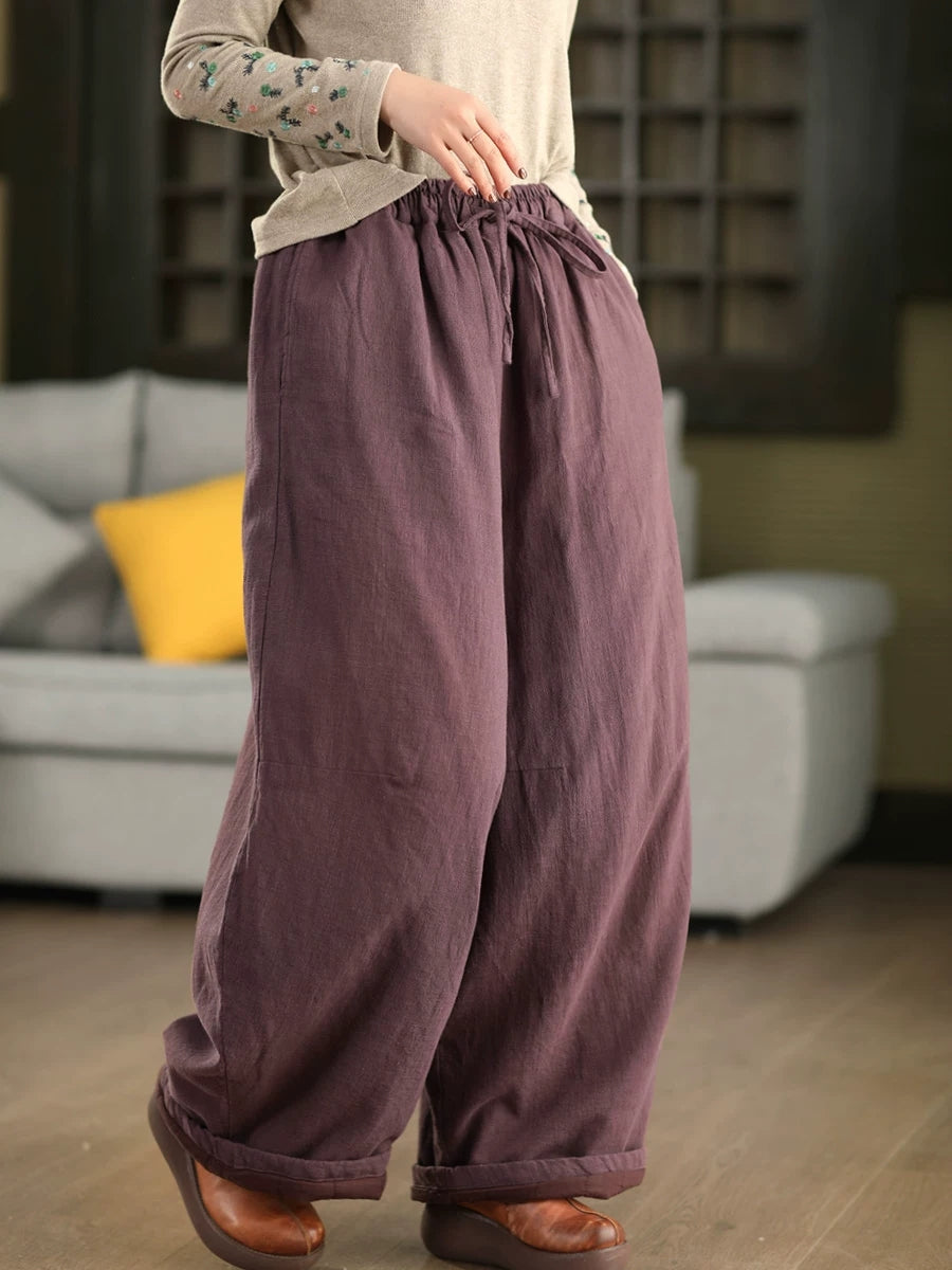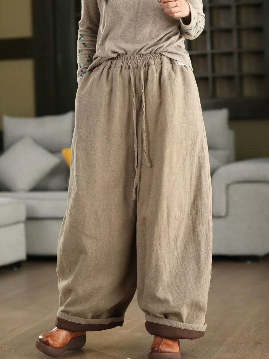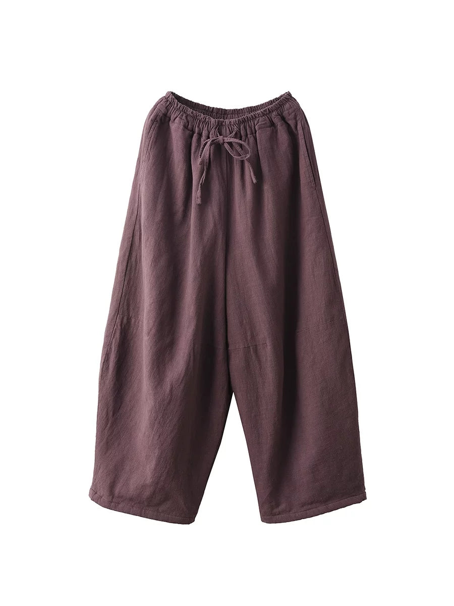 Kvinder Vinter Retro Ren Farve 100% Hør Polstrede Lige Bukser