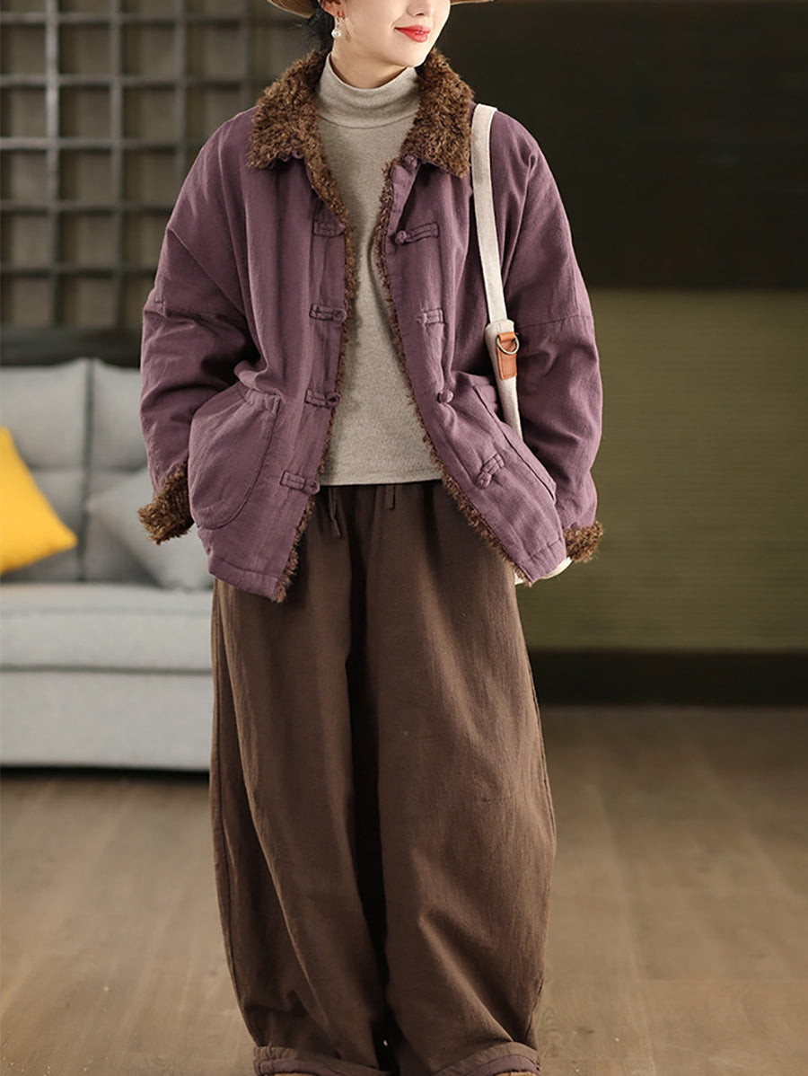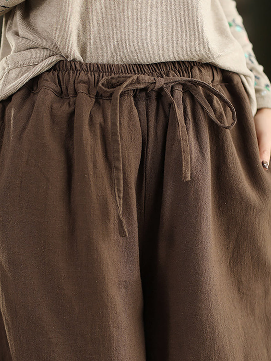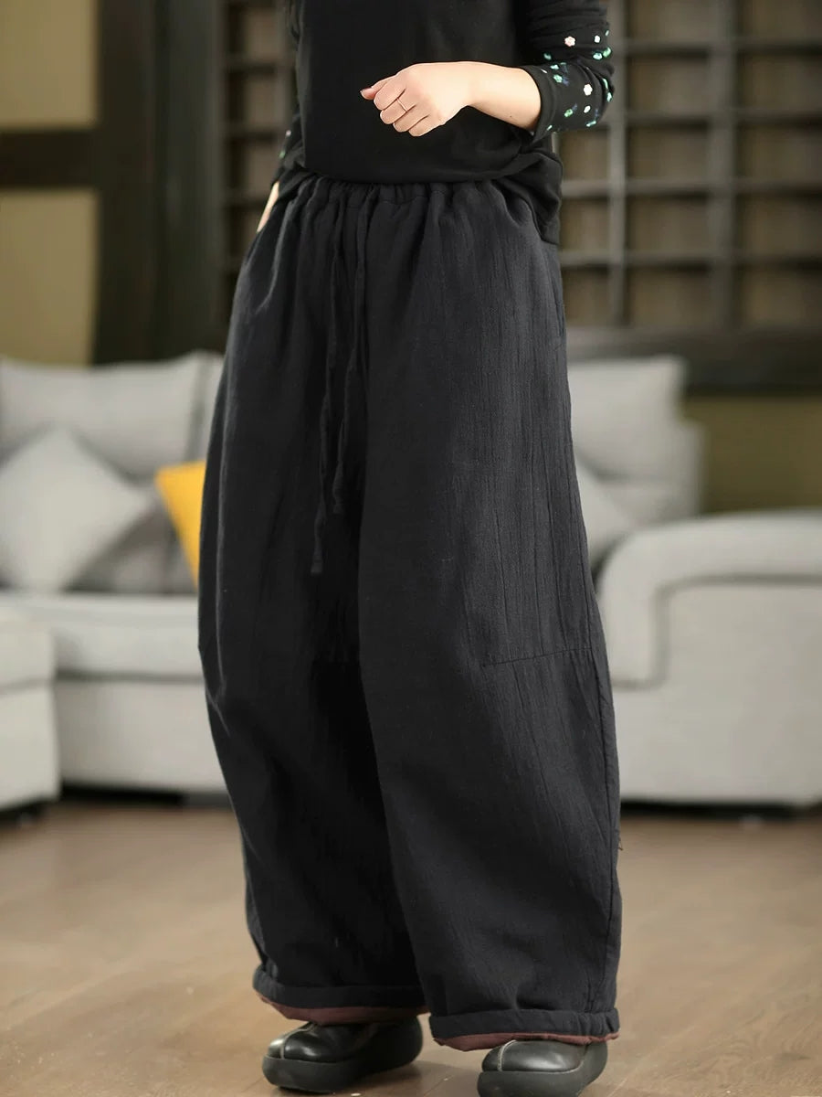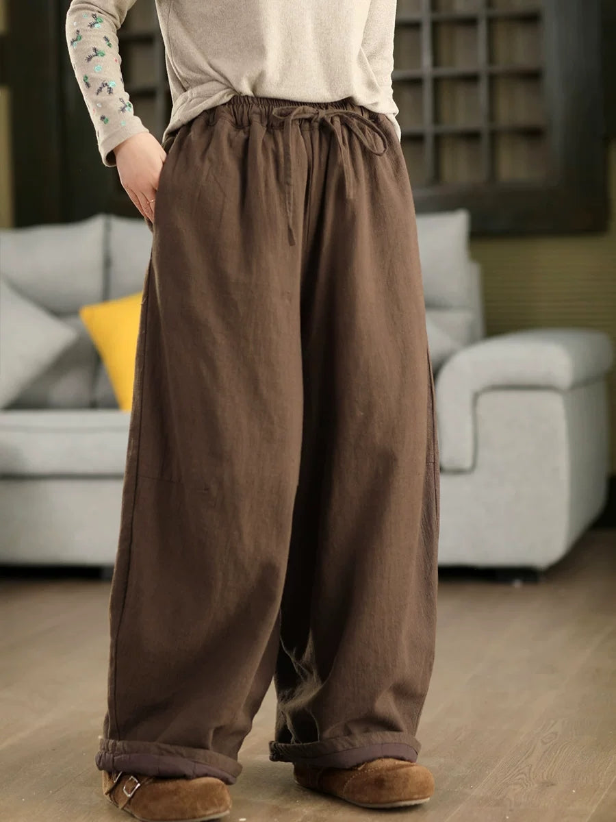 Kvinder Vinter Retro Ren Farve 100% Hør Polstrede Lige Bukser