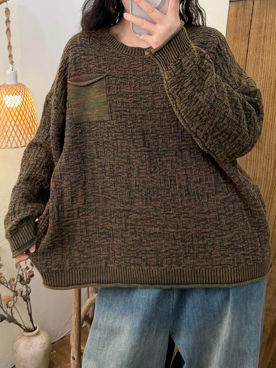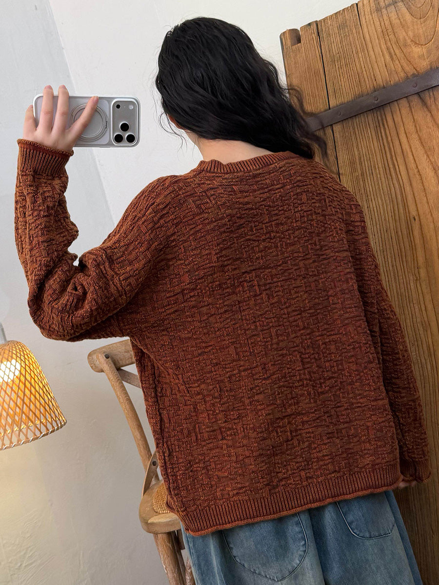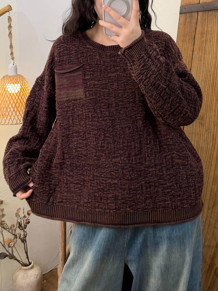 Kunstnerisk strikket O-hals-trøje til kvinder efterår