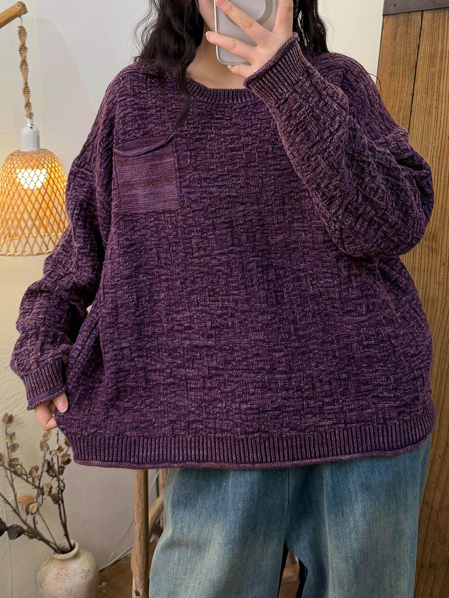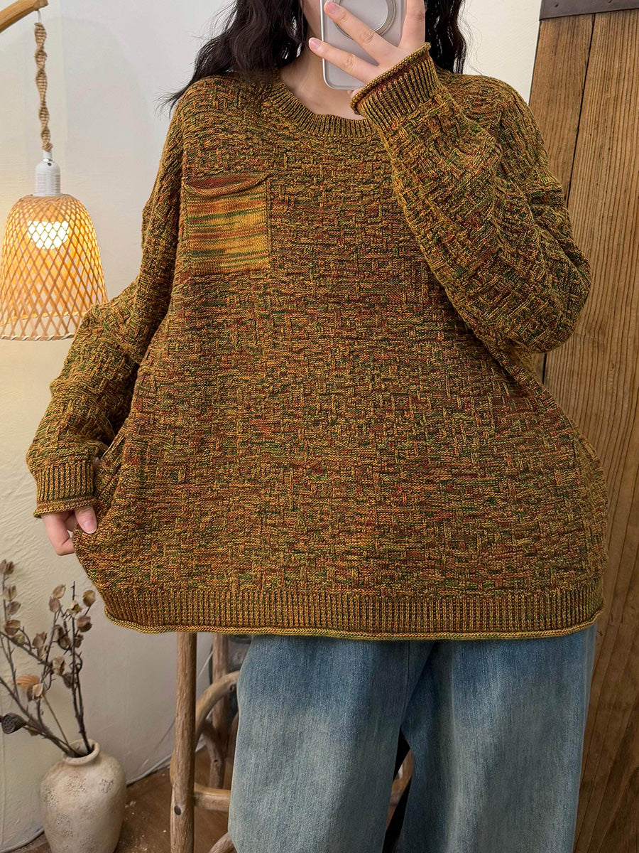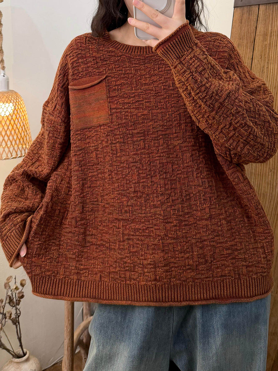 Kunstnerisk strikket O-hals-trøje til kvinder efterår