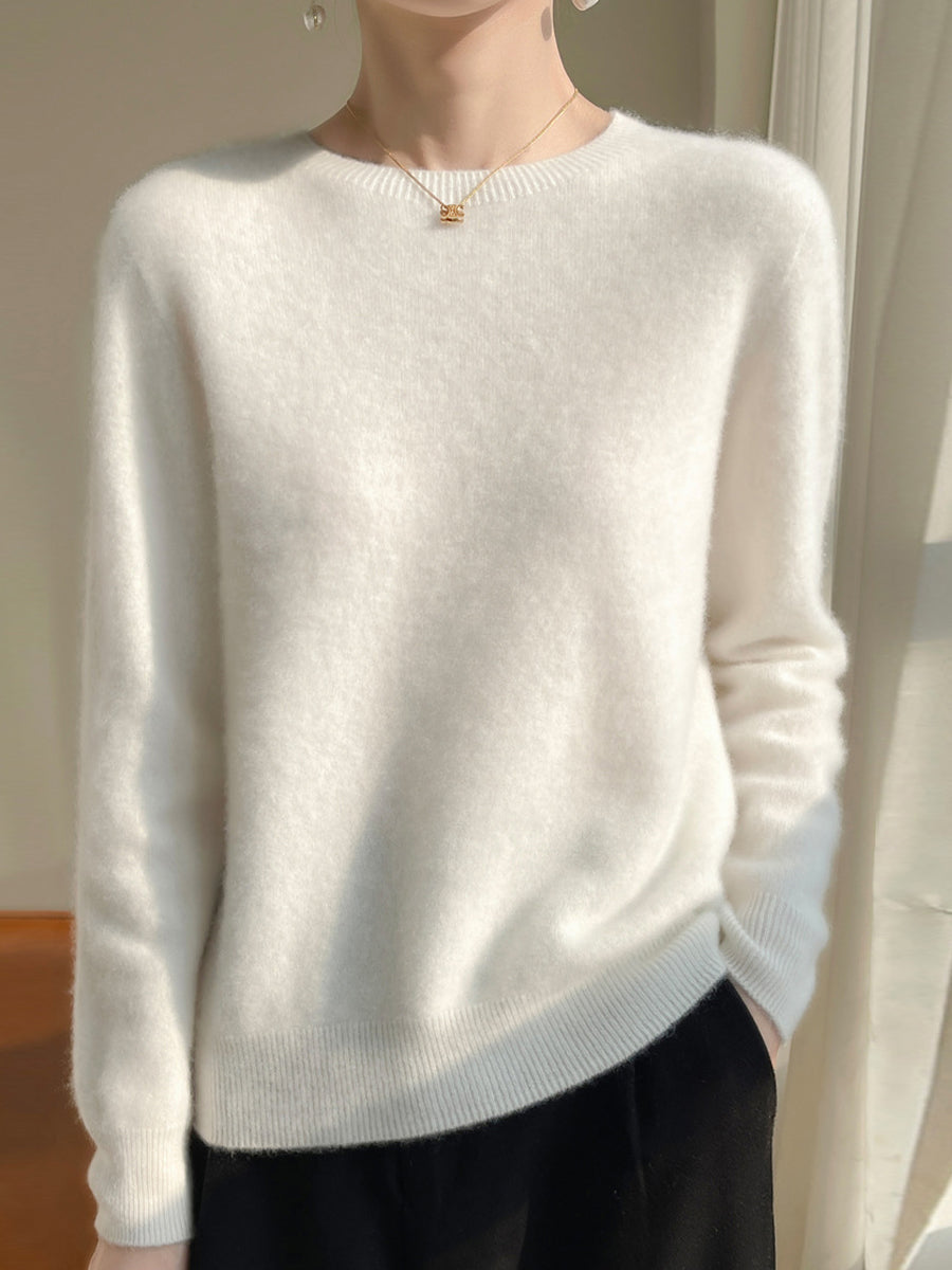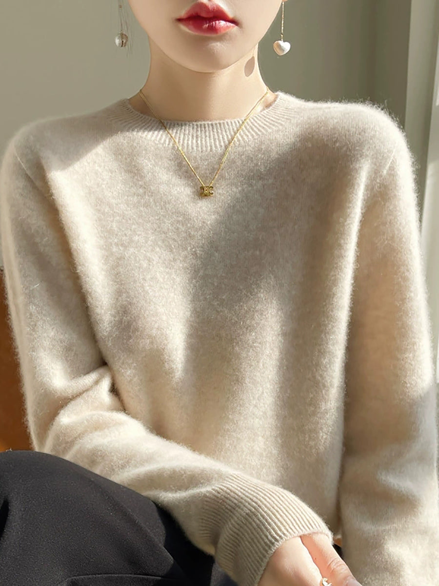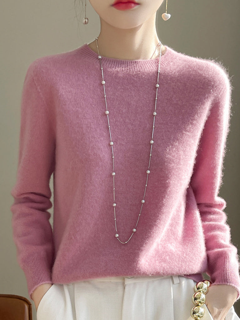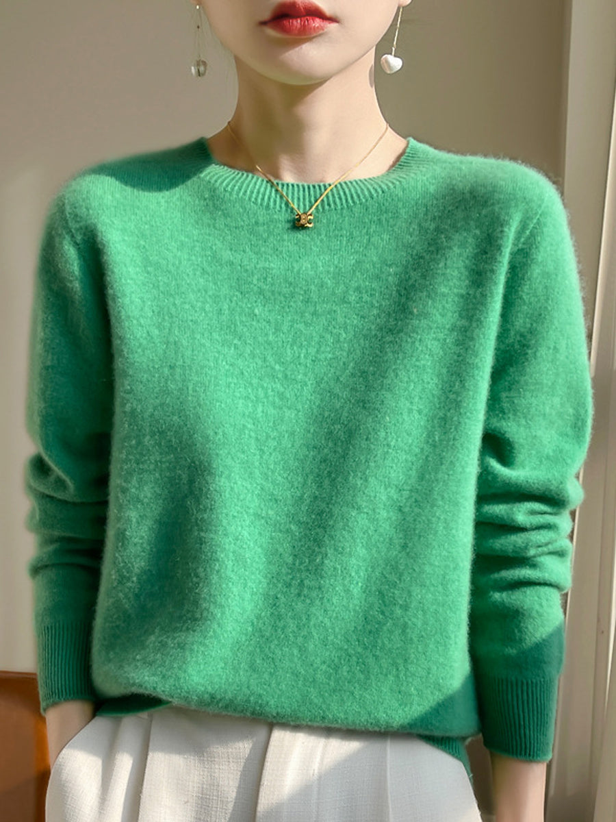 Kvinder Efterår Casual Ren Farve O-hals Sweater