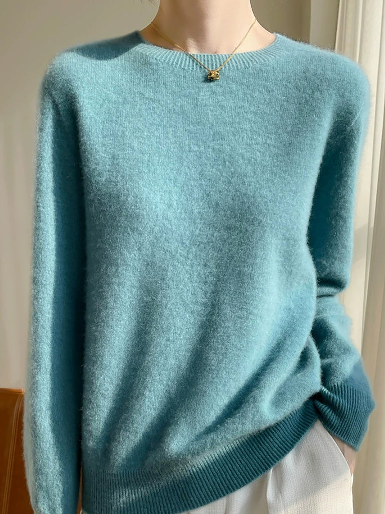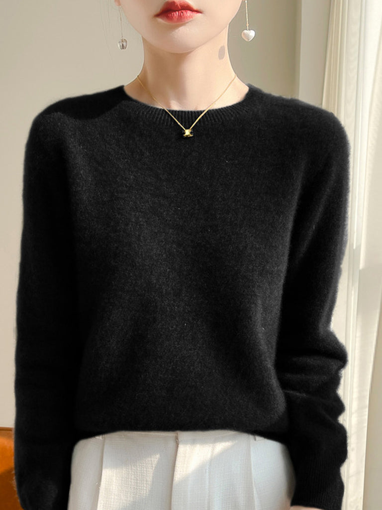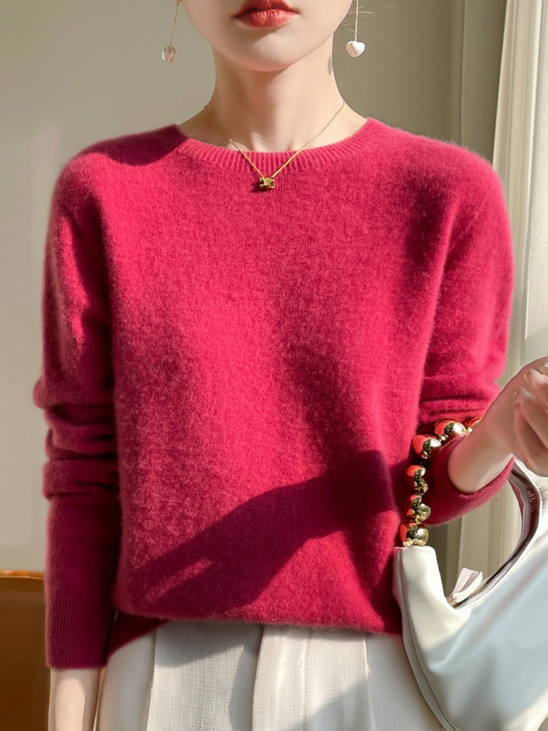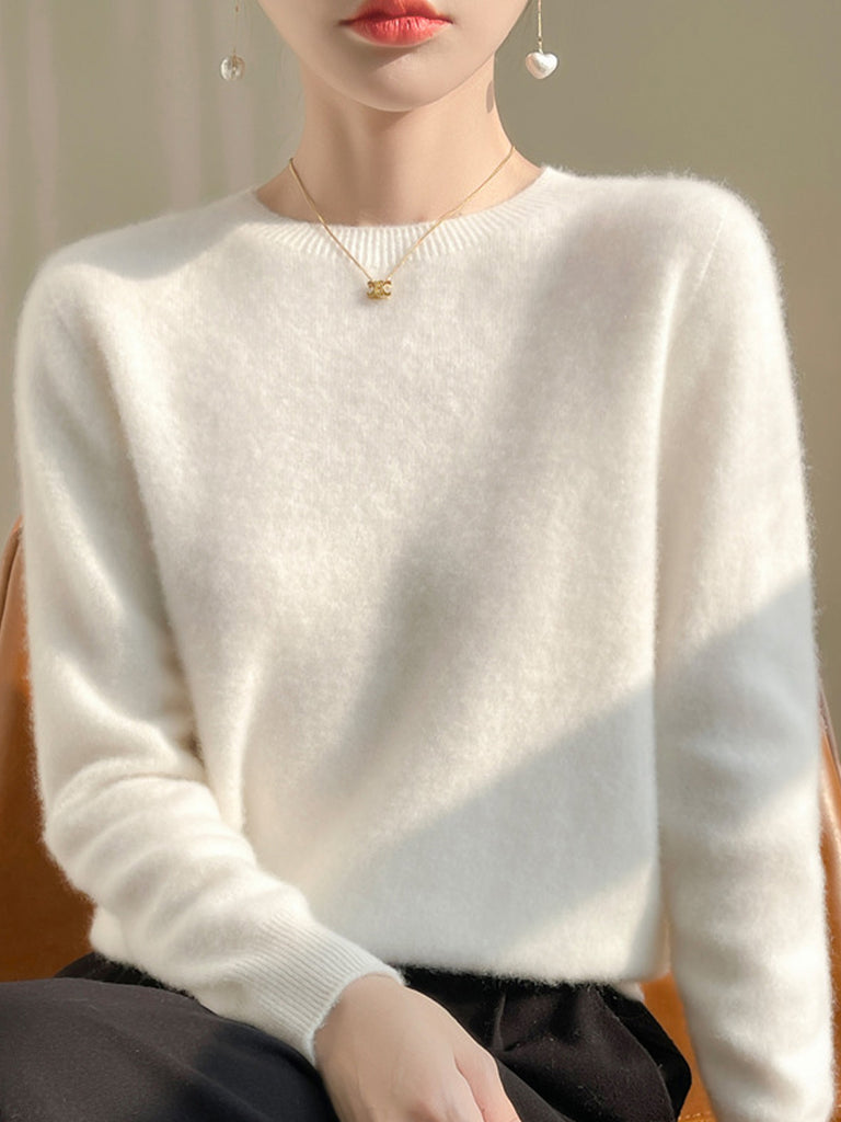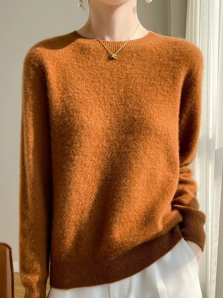 Kvinder Efterår Casual Ren Farve O-hals Sweater