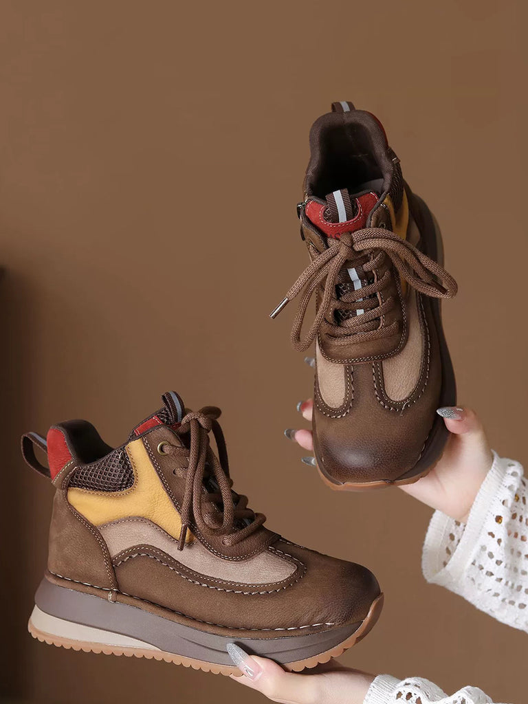 Kvinder Vintage Ægte Læder Spliced High-top Sko