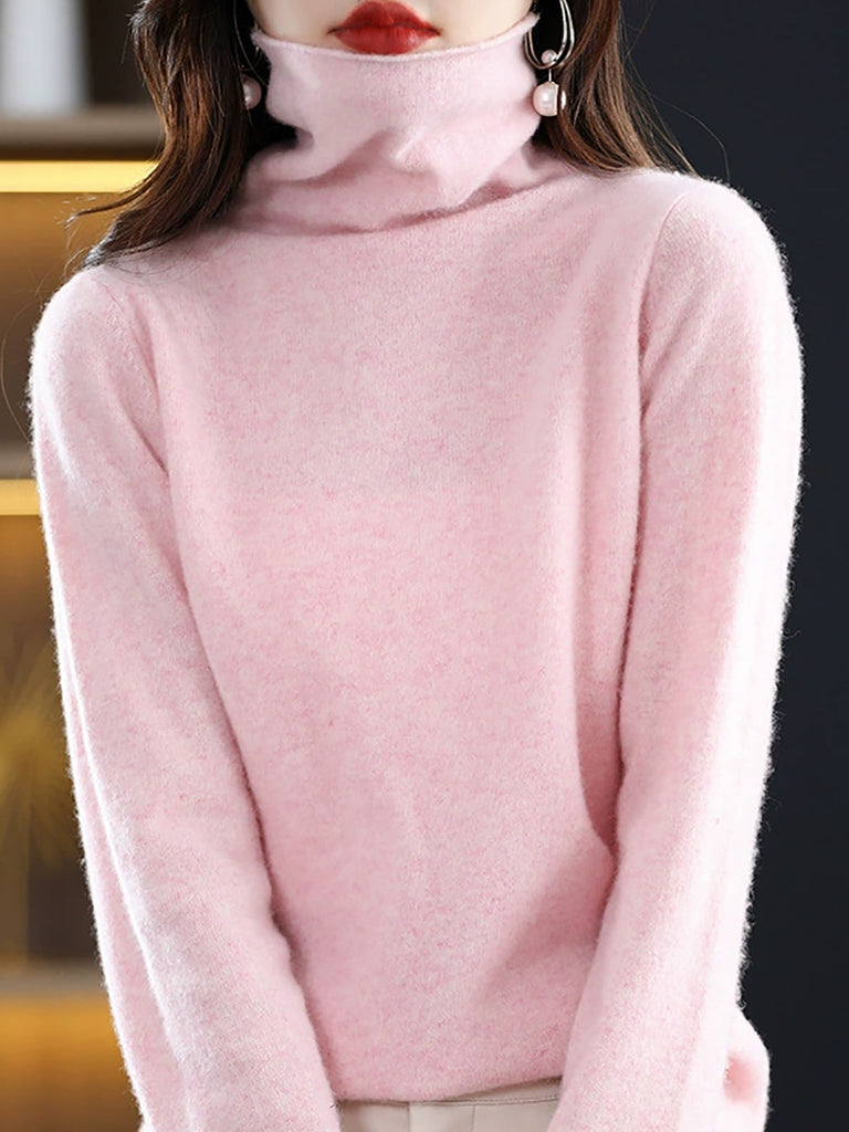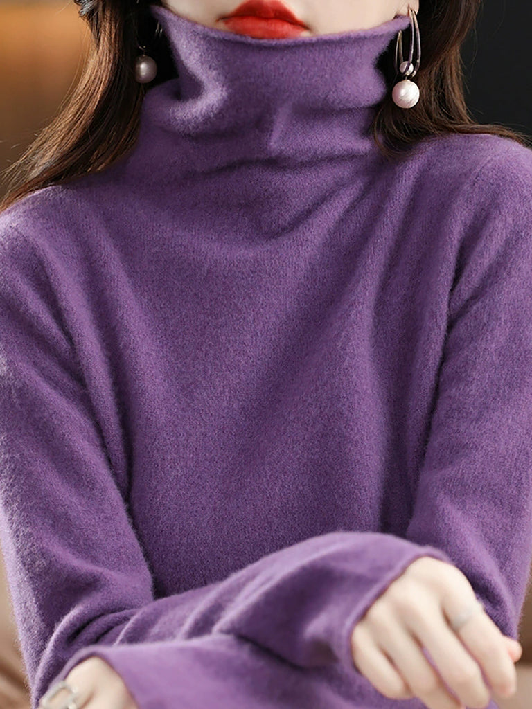 Kvinder Efterår Casual Strikket Uld Rullekravetrøje