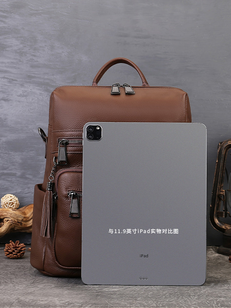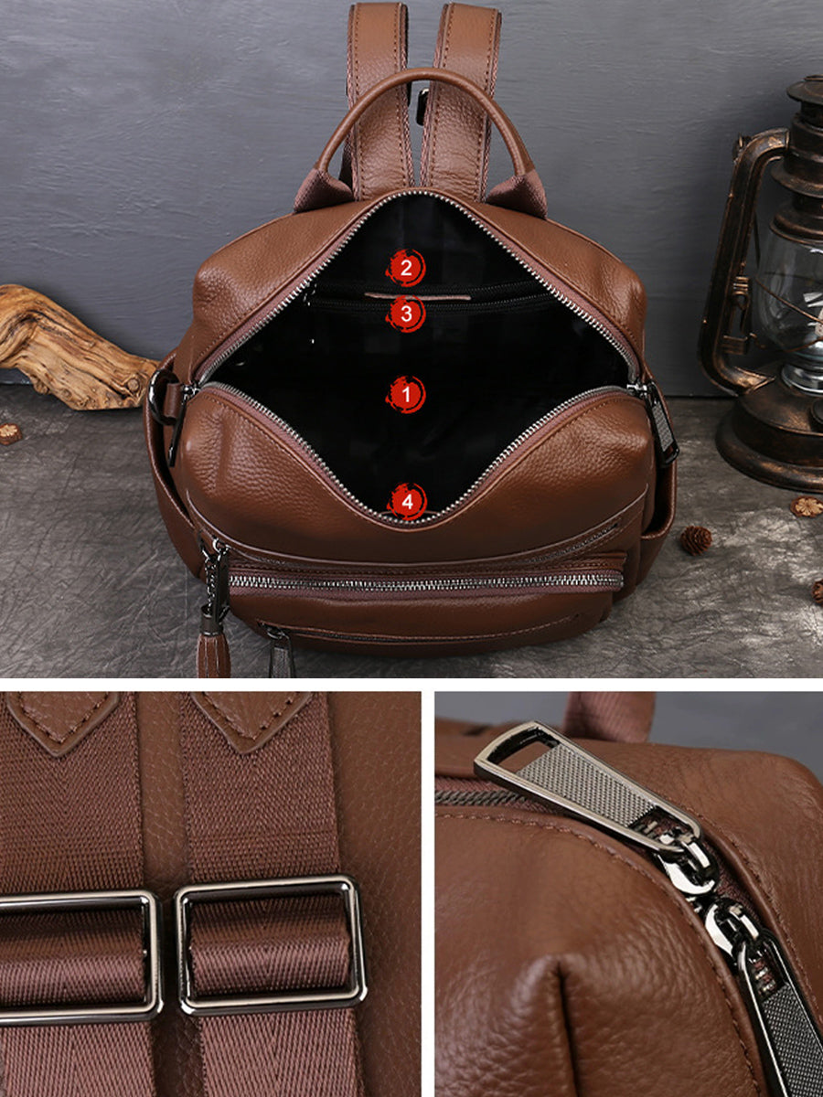 Kvinder Vintage Rygsæk i ægte læder med stor kapacitet