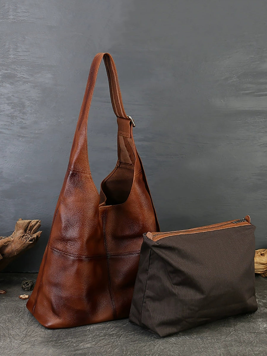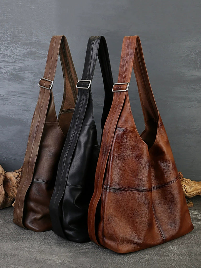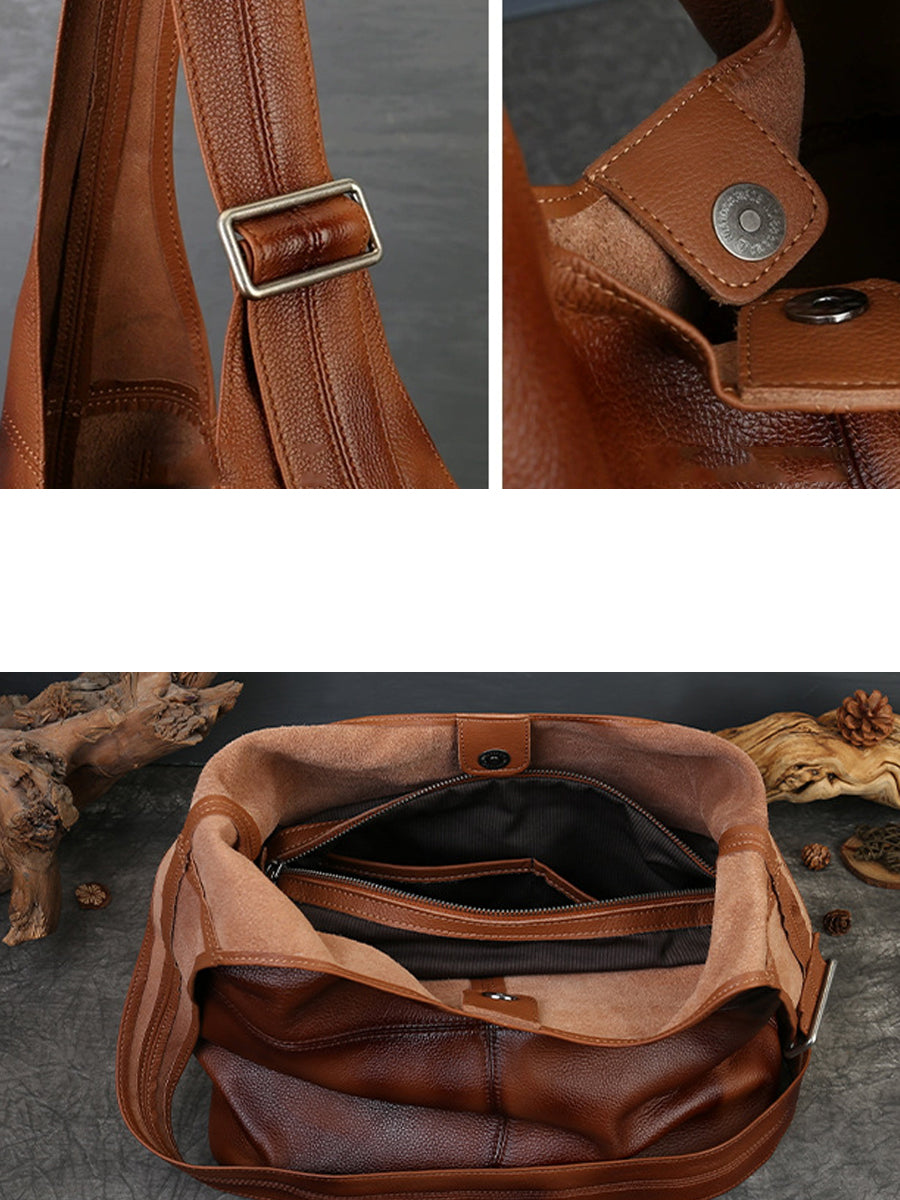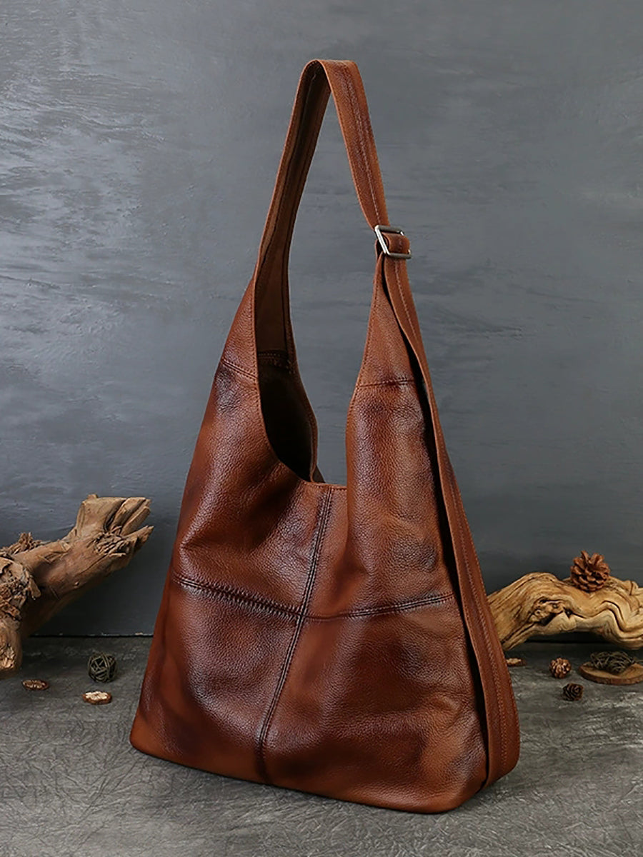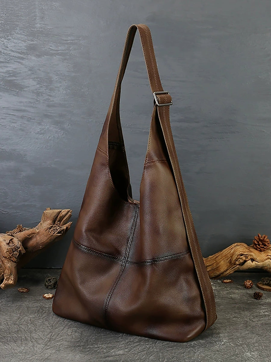 Kvinder Vintage Ægte Læder Spliced Skuldertaske