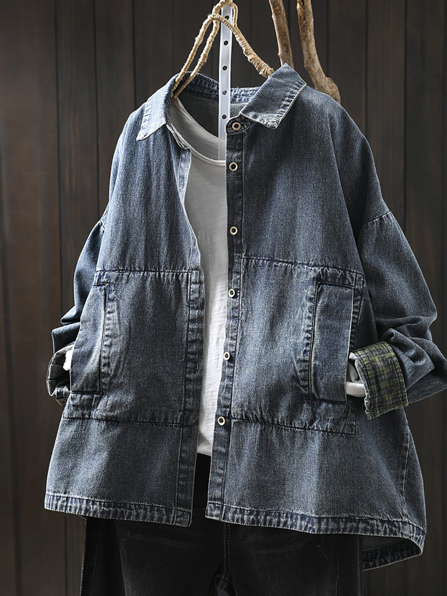 Plus Size Women Vintage Autumn Turn-down Collar Denim Shirt Coat