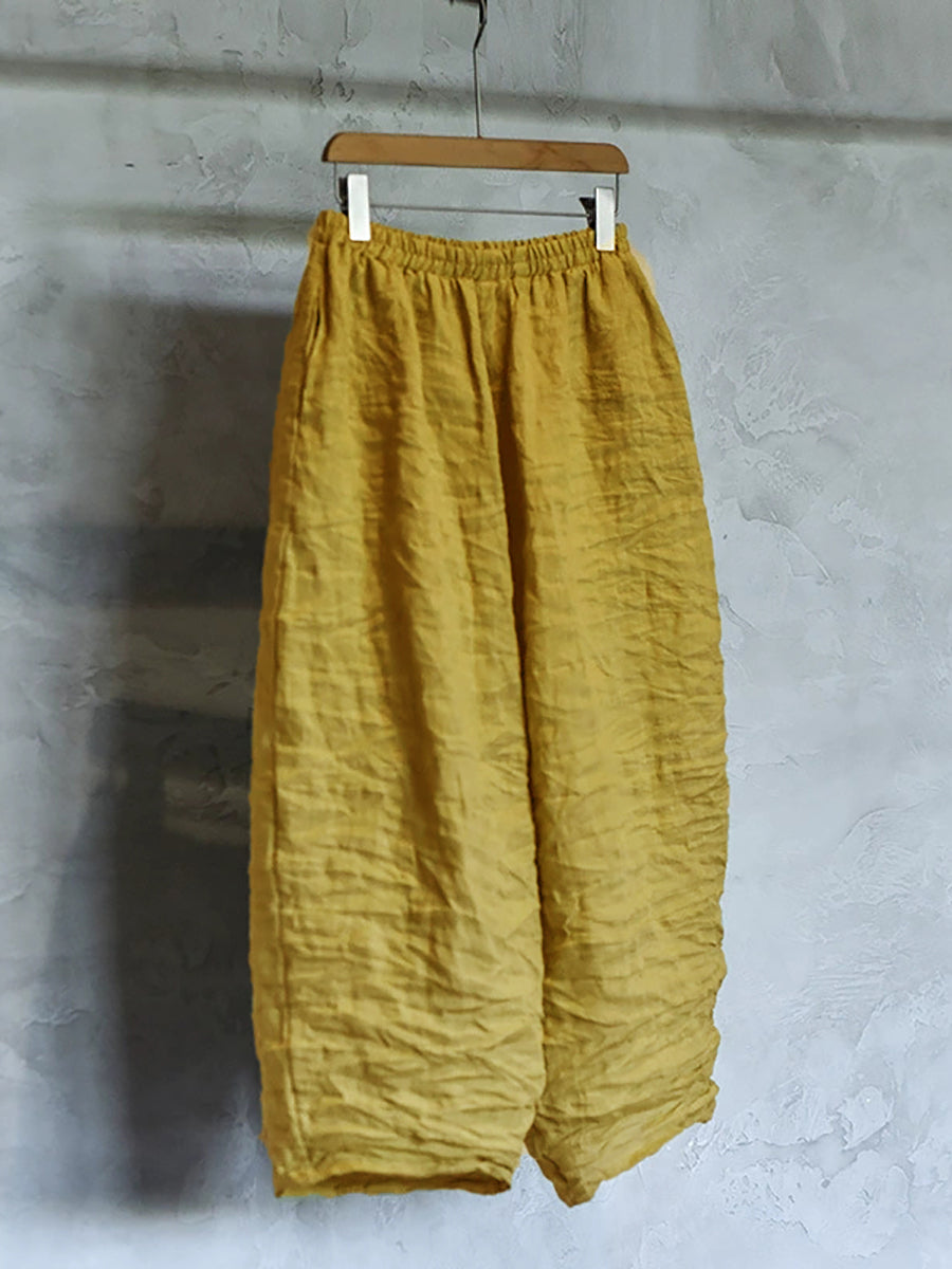 Kvinder Forår Retro Ren Farve Hør Bukser Med Brede Ben