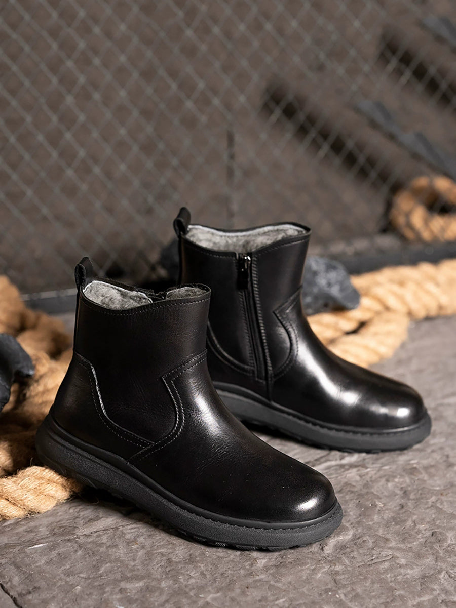 Dame Vinter Martin Støvler i ægte læder med fleecefor