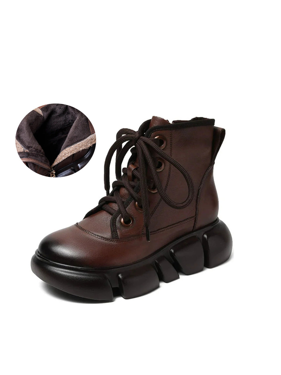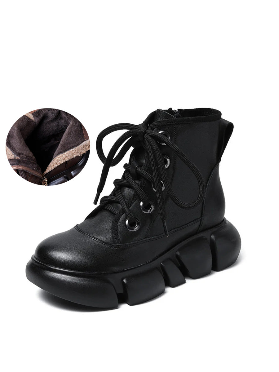 Kvinder Vinter Ren Farve Læder Platform Martin Støvler