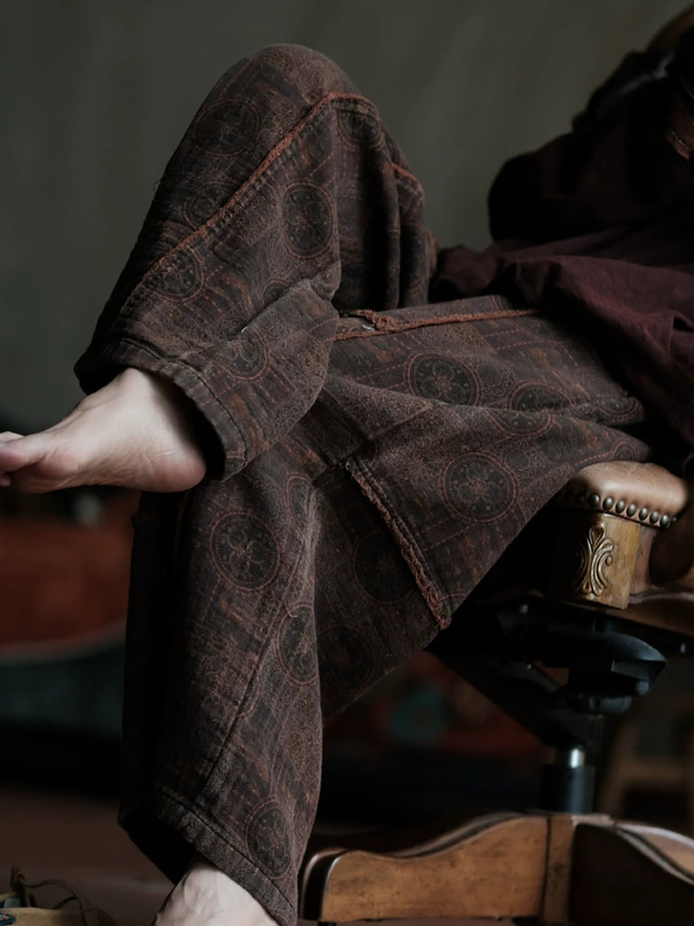 Kvinder Sommer Retro Print Spliced Bomuld Brede Benbukser