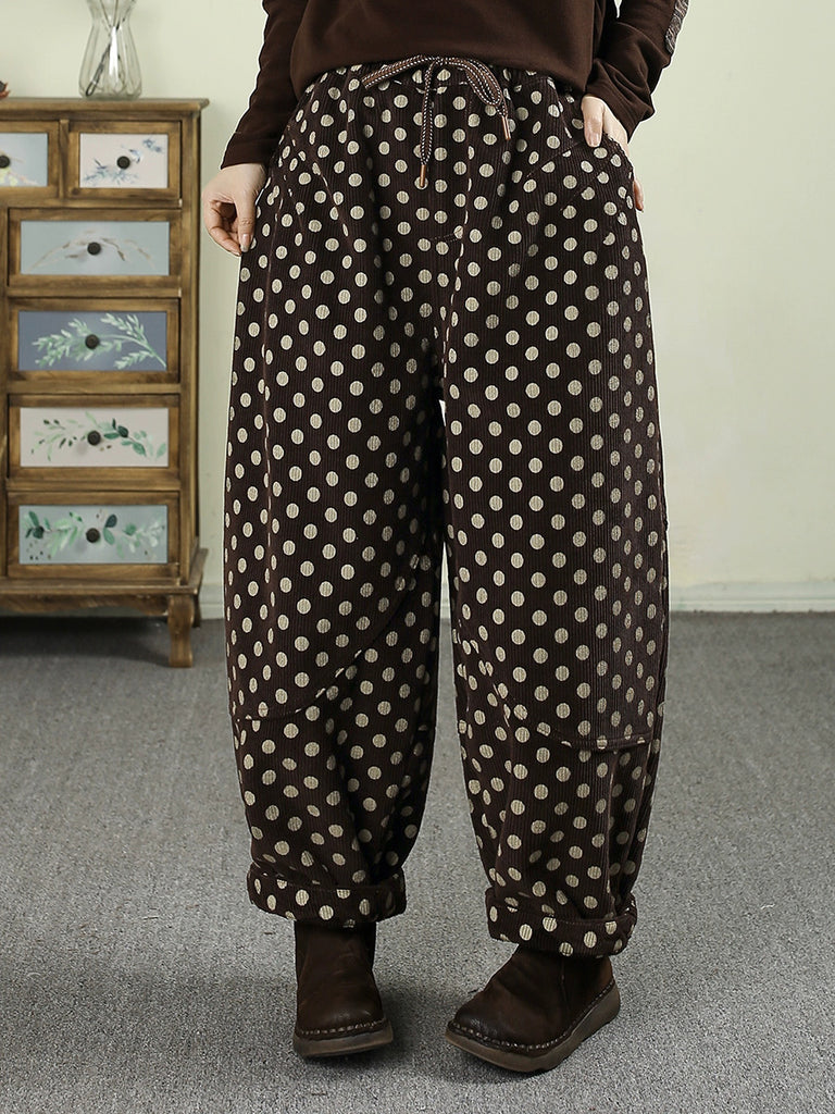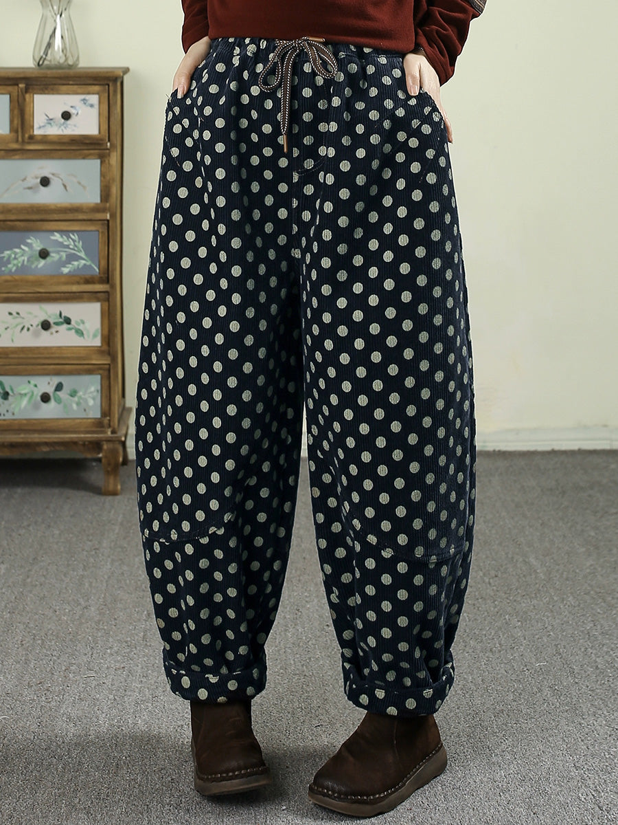 Dame vinterprikkede corduroy fleeceforede harembukser