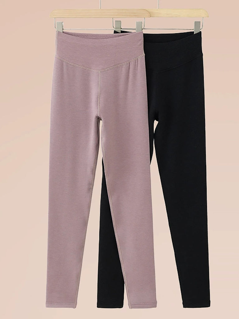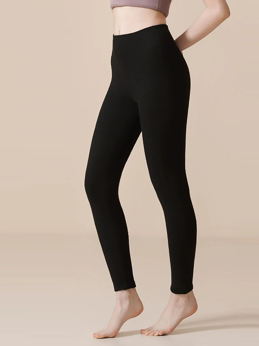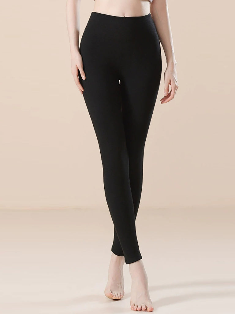 Kvinders vintervarme fleeceforede leggings i ren farve