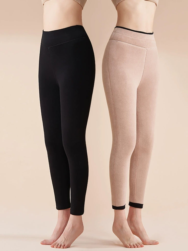 Kvinders vintervarme fleeceforede leggings i ren farve