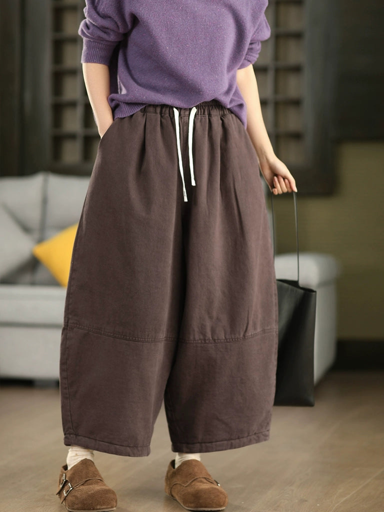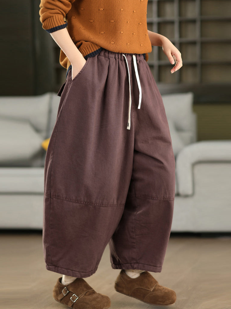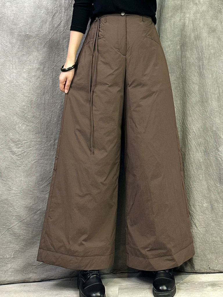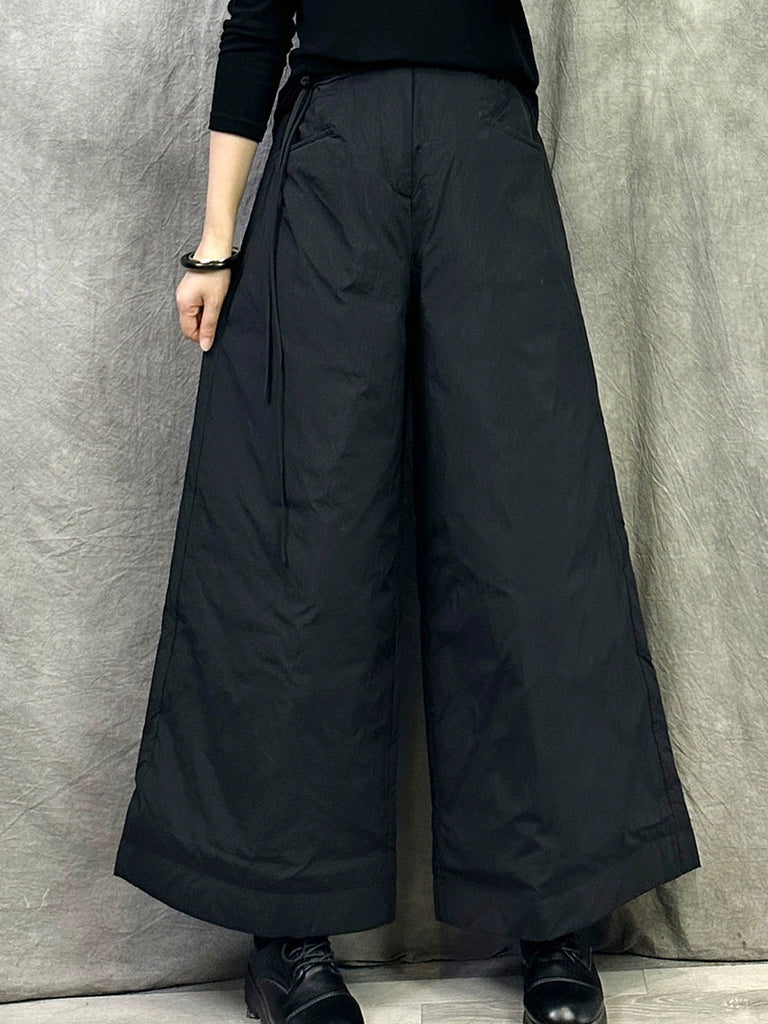 Kvinder Vinter Casual Ren Farve Dunbukser med Brede Ben