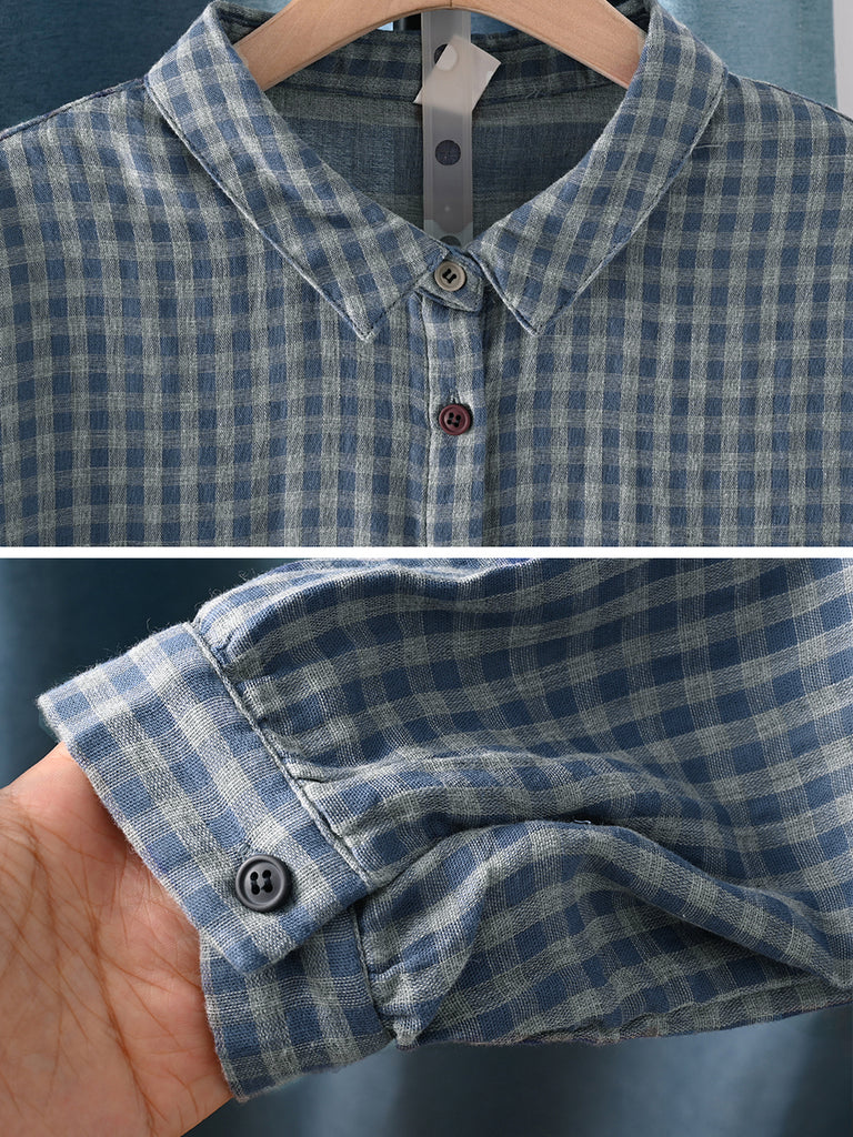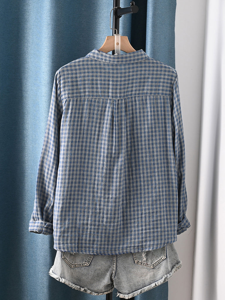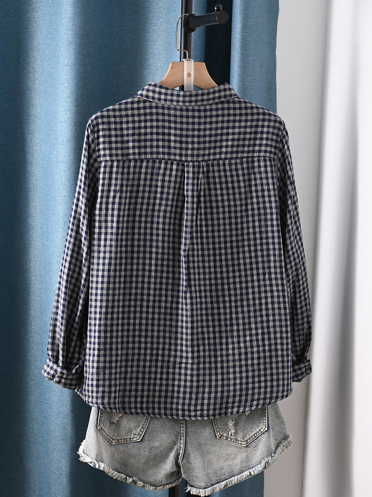 Kvinder Efterårsskjorte med ternet krave og 100% bomuld
