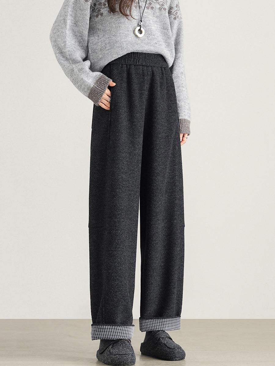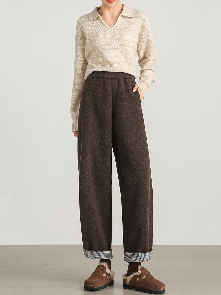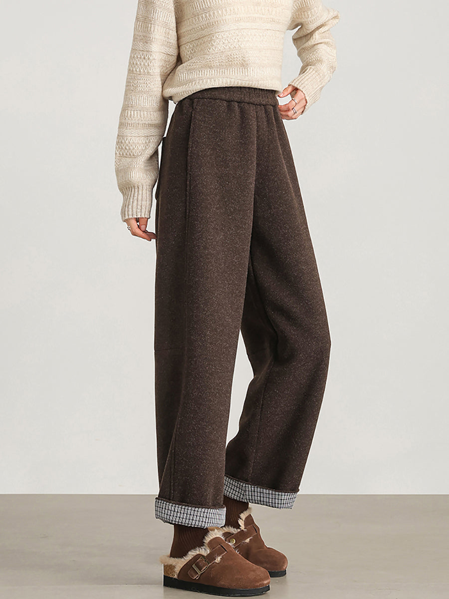 Kvinder Vinter Casual Ren Farve Fleeceforede Lige Bukser