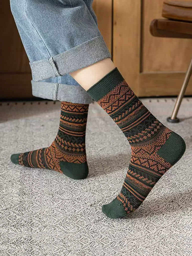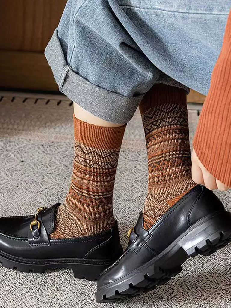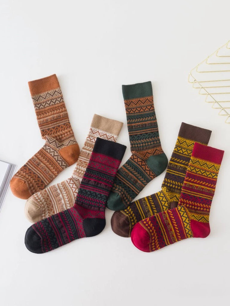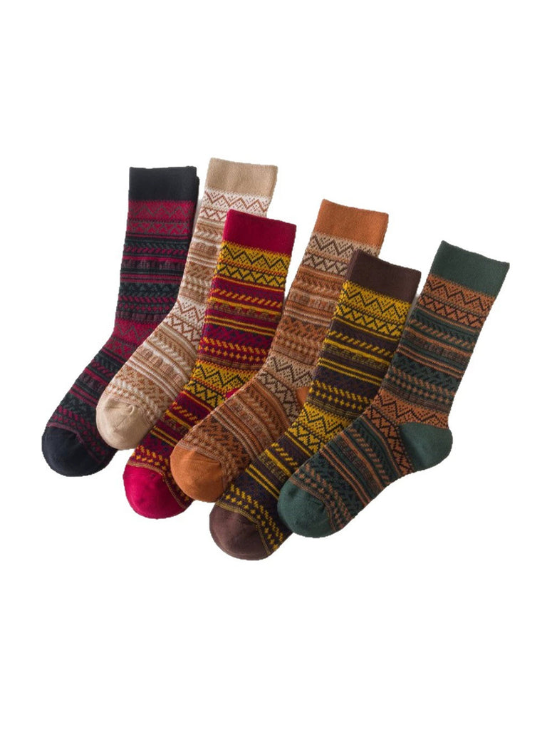 6 par dame vinterstribede strømper med mellemhøj hæl