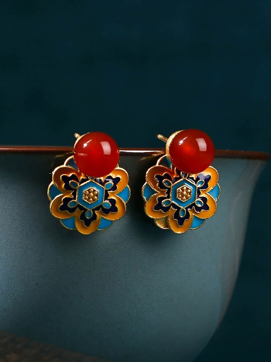 Vintage Jade Emalje Lotus Totem Legeringsøreringe