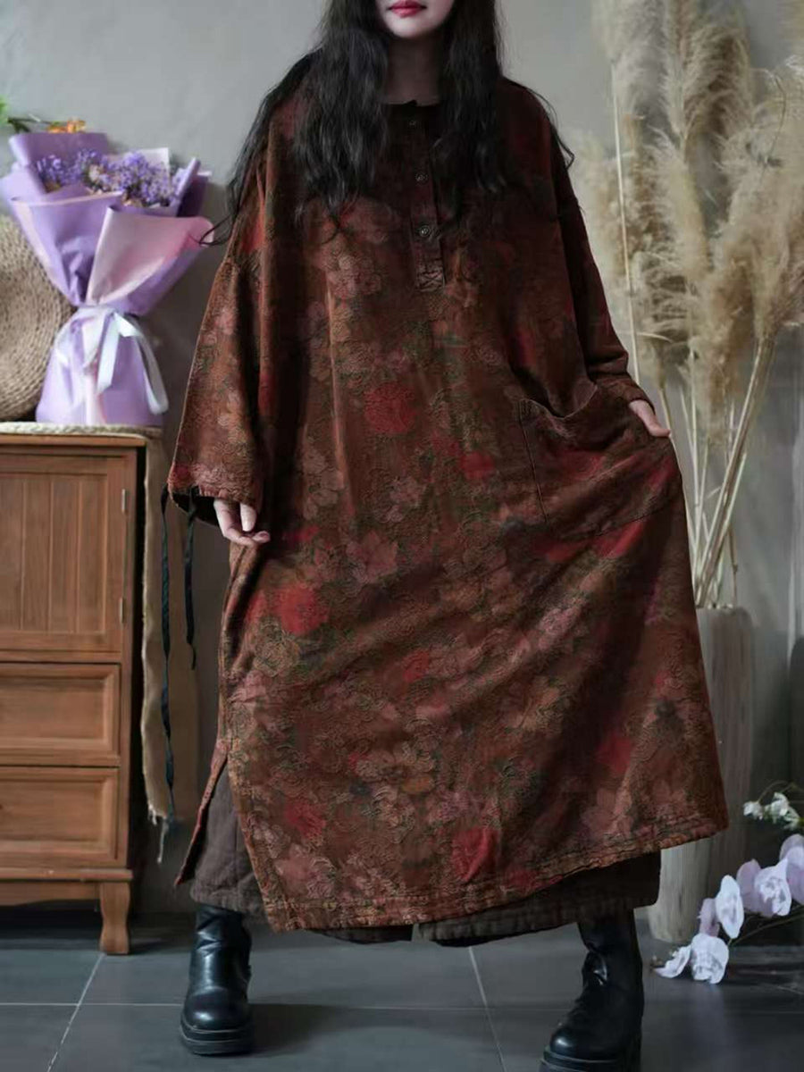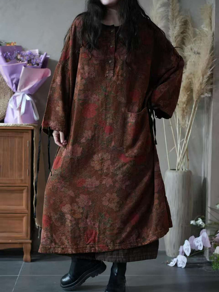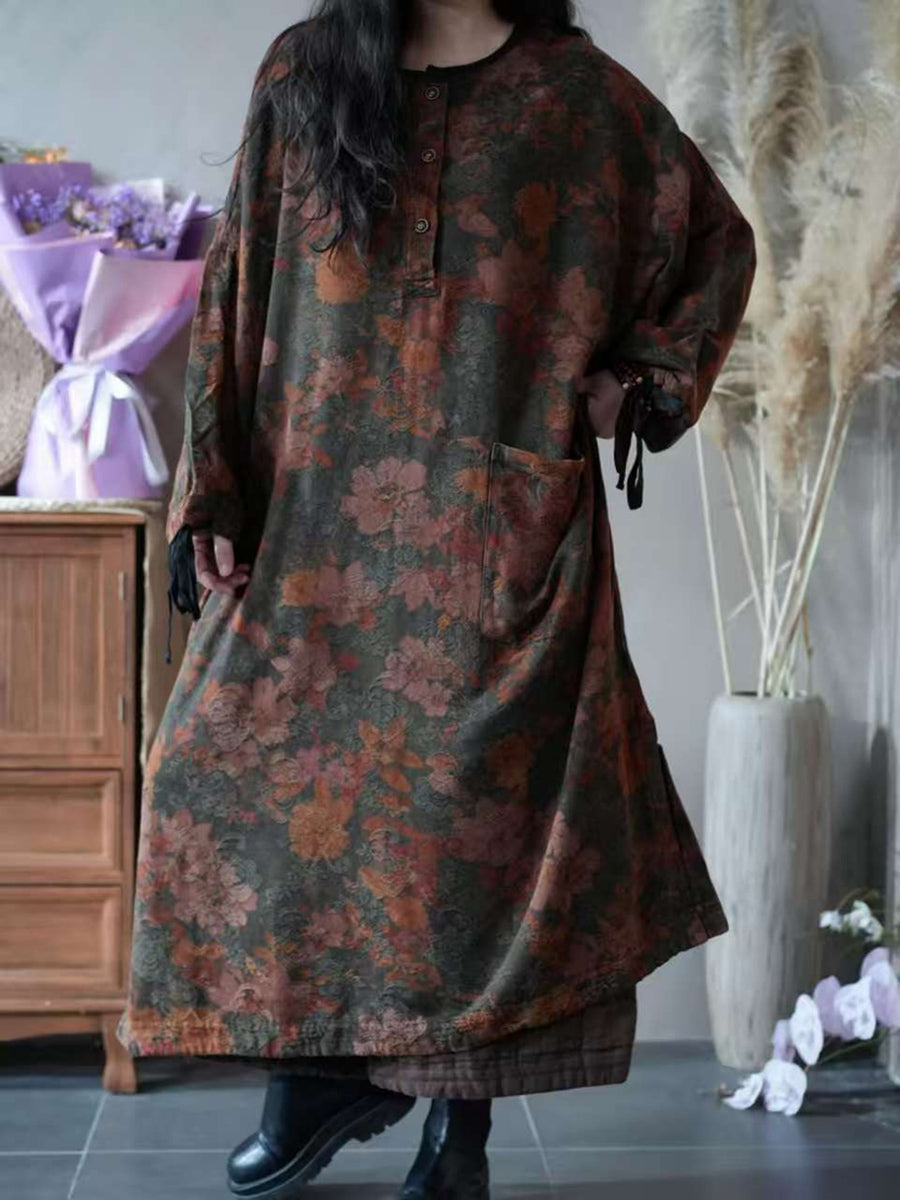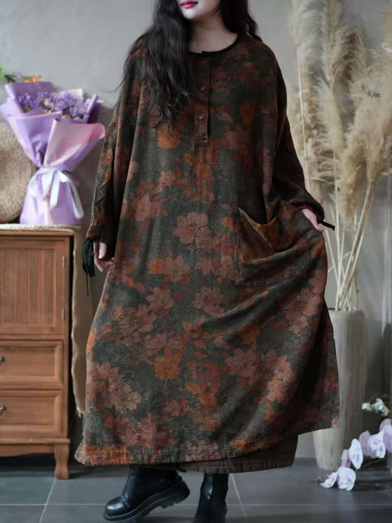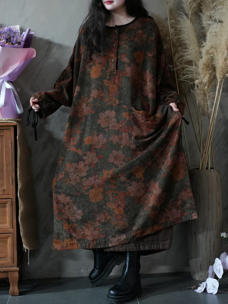 Kvinder Efterår Vintage Blomster O-hals Kjole
