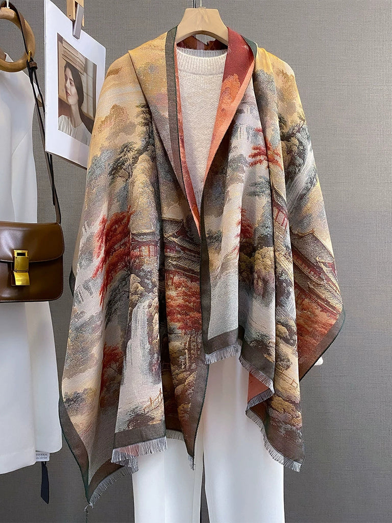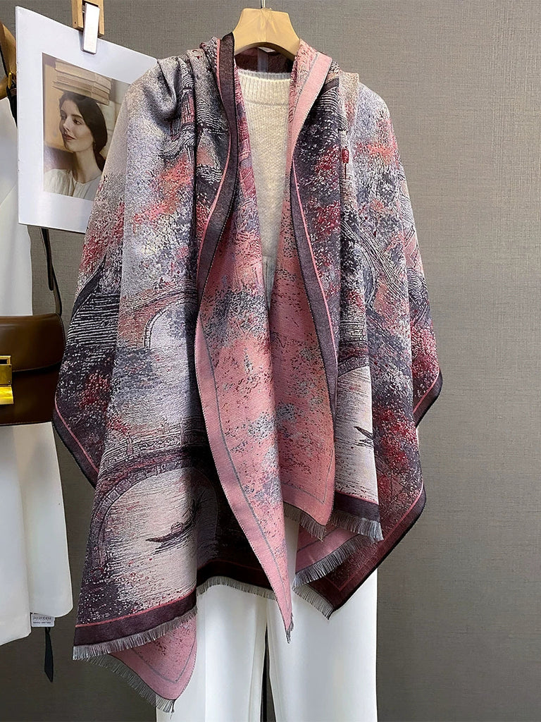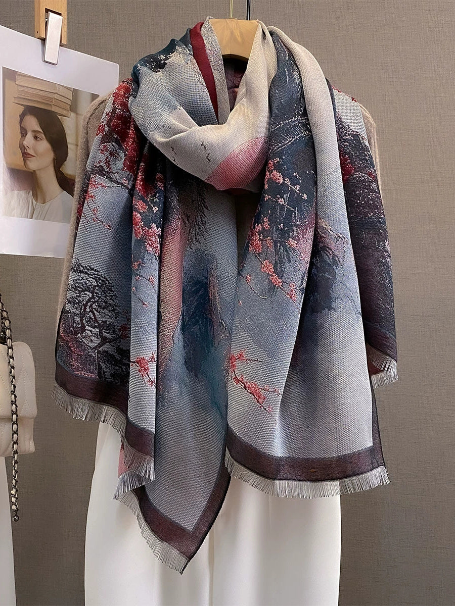 Kvinders vinter kunstnerisk print sjal tørklæde
