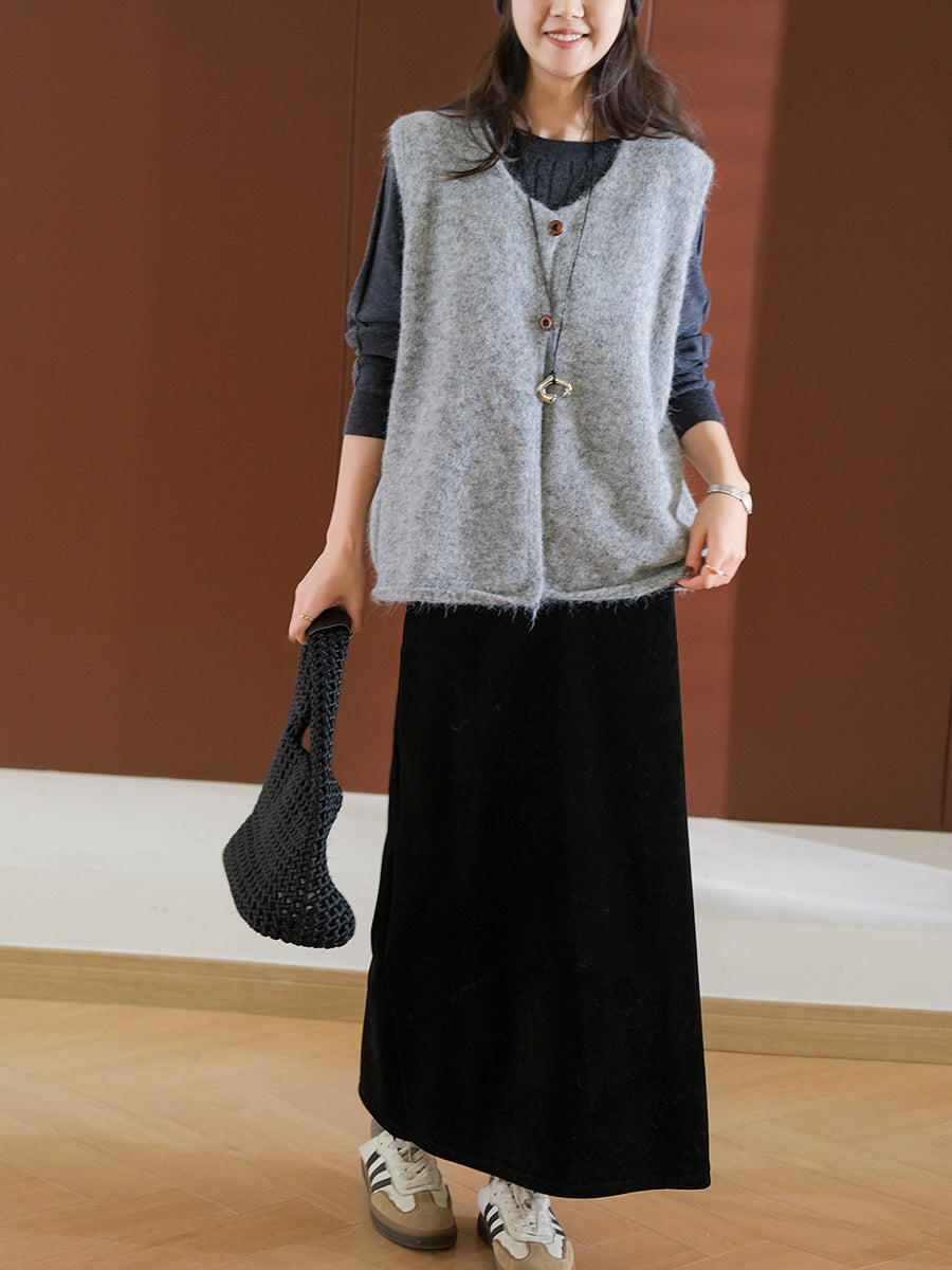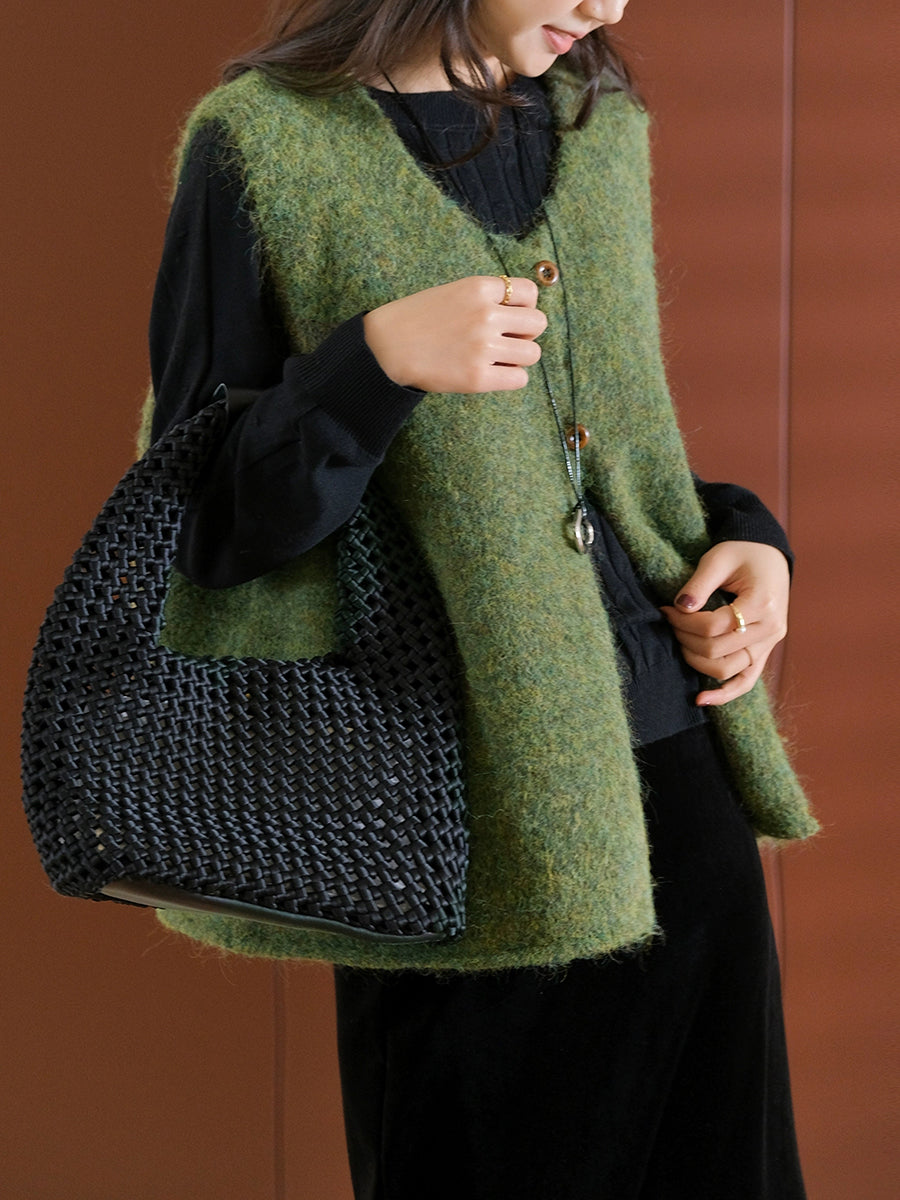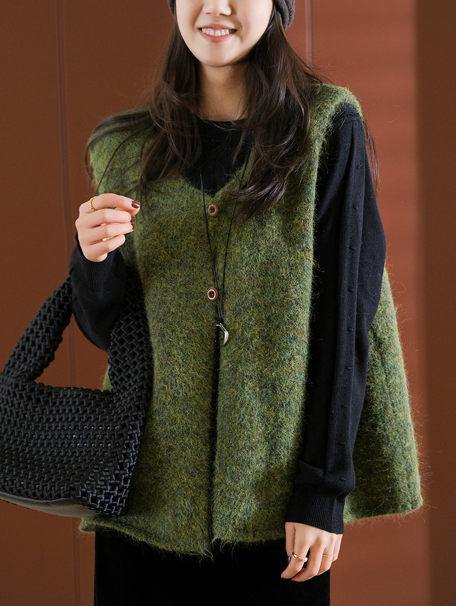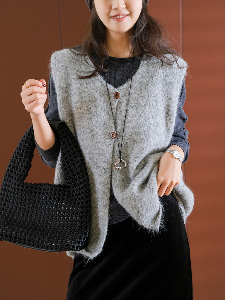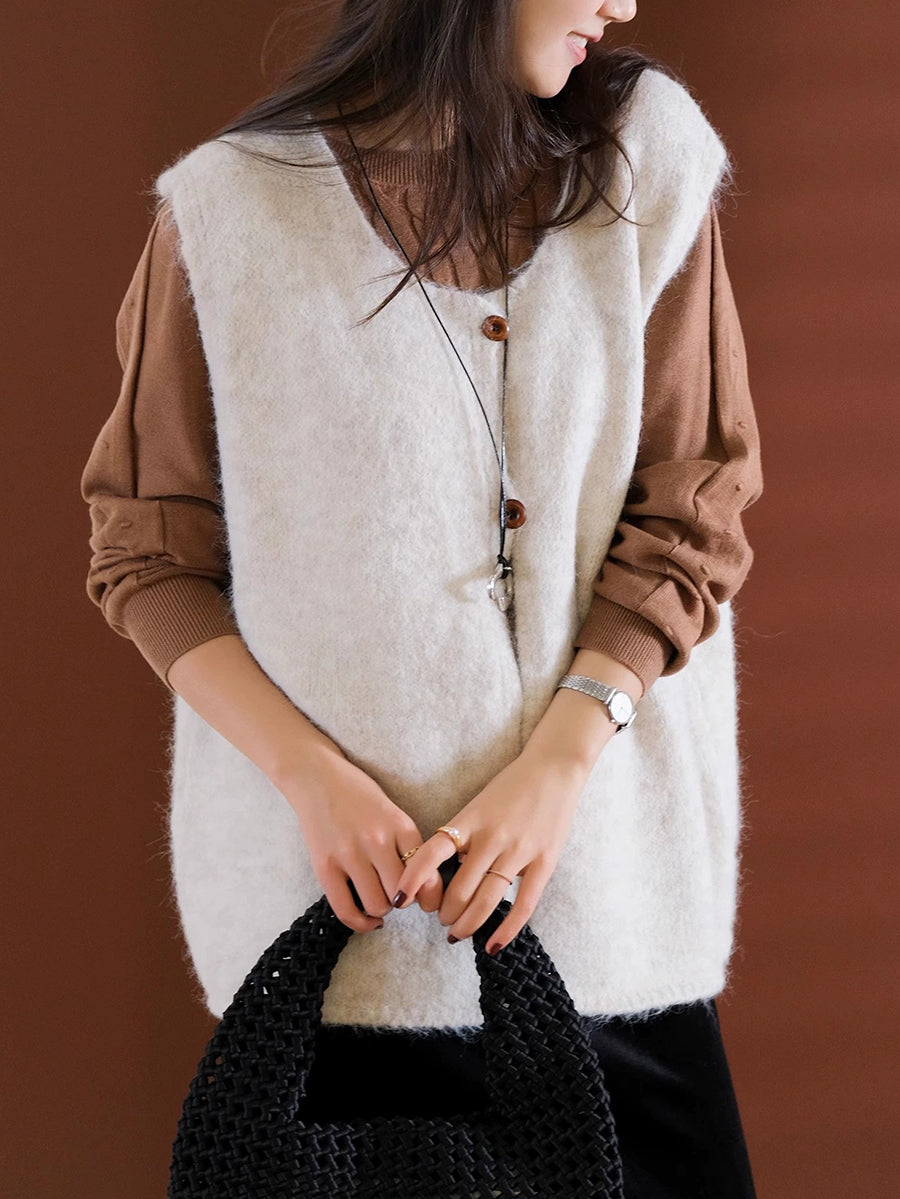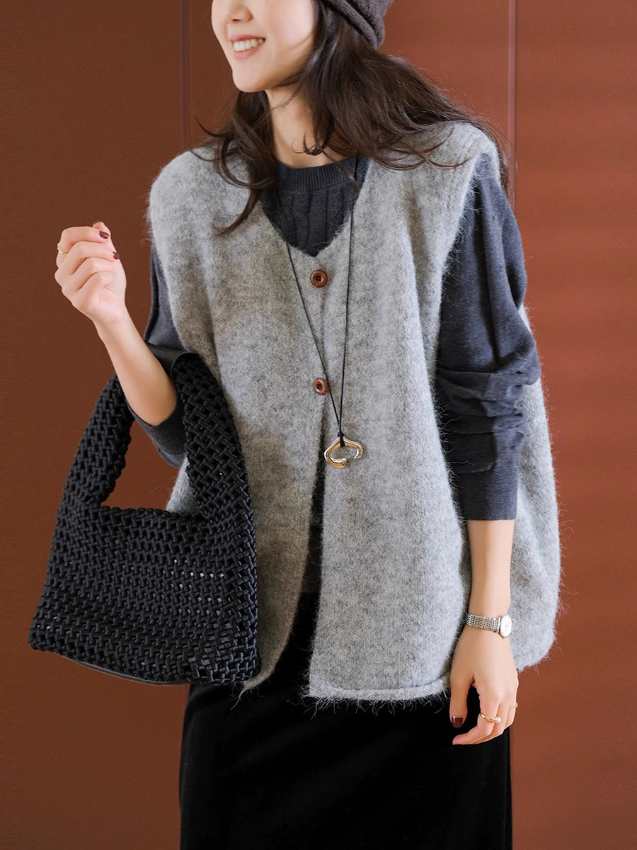 Kvinder Vinter Casual Ren Farve V-Hals Uldvest