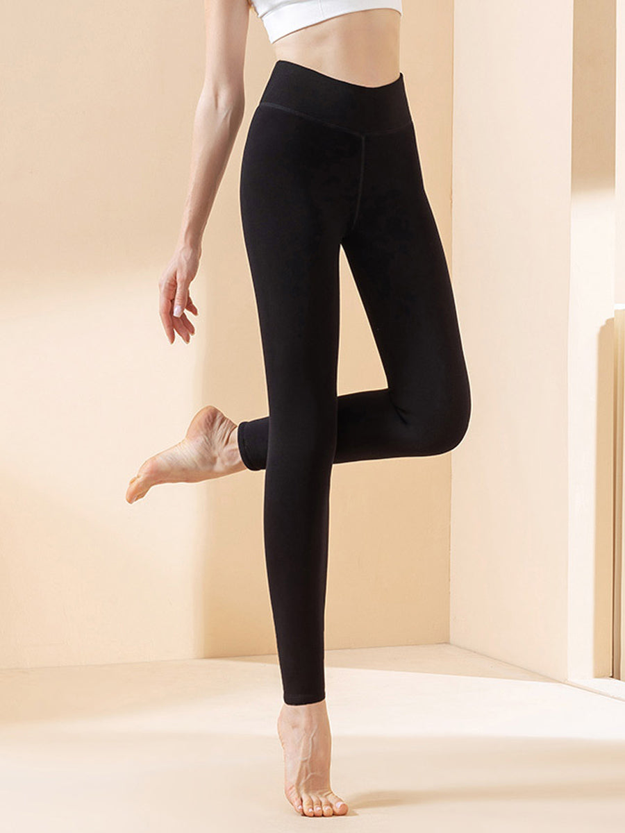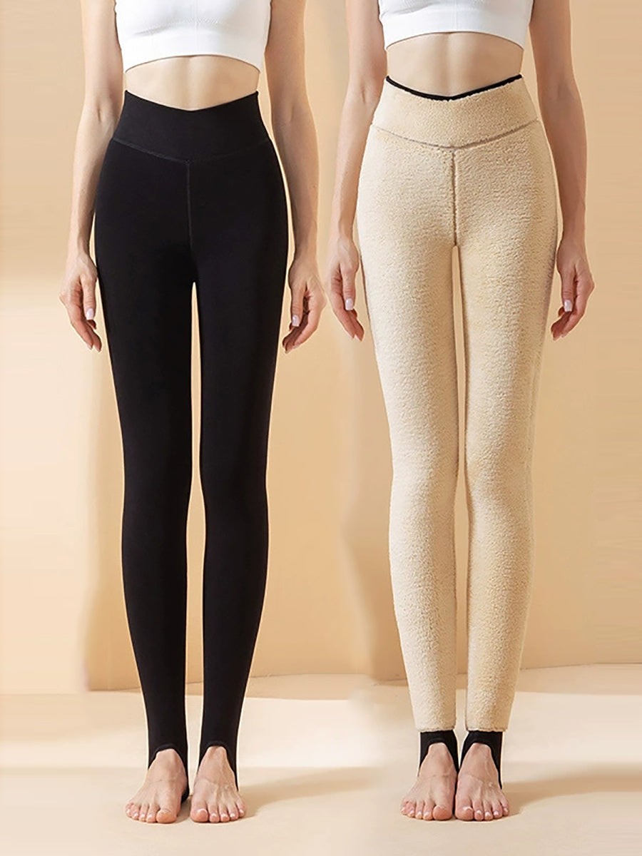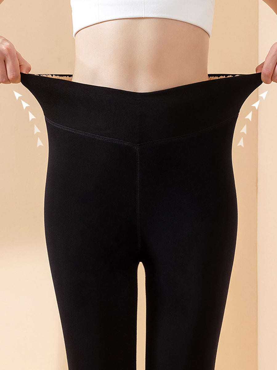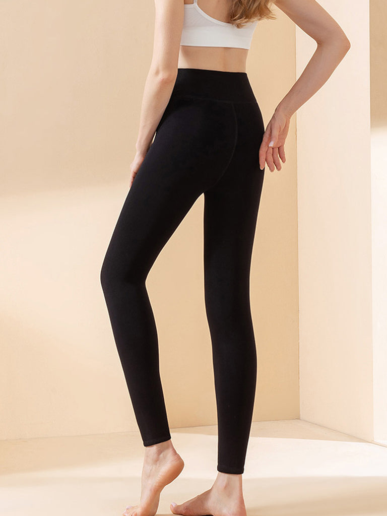 Kvinders vintervarme fleeceforede leggings i ren farve