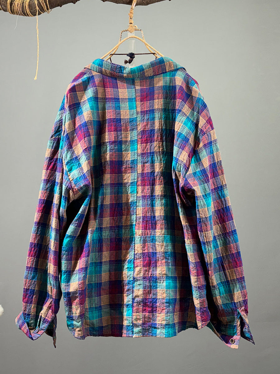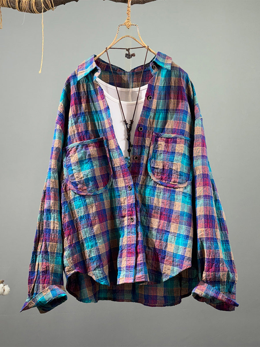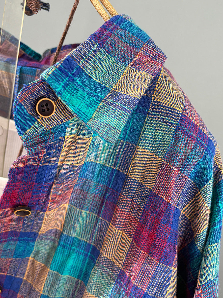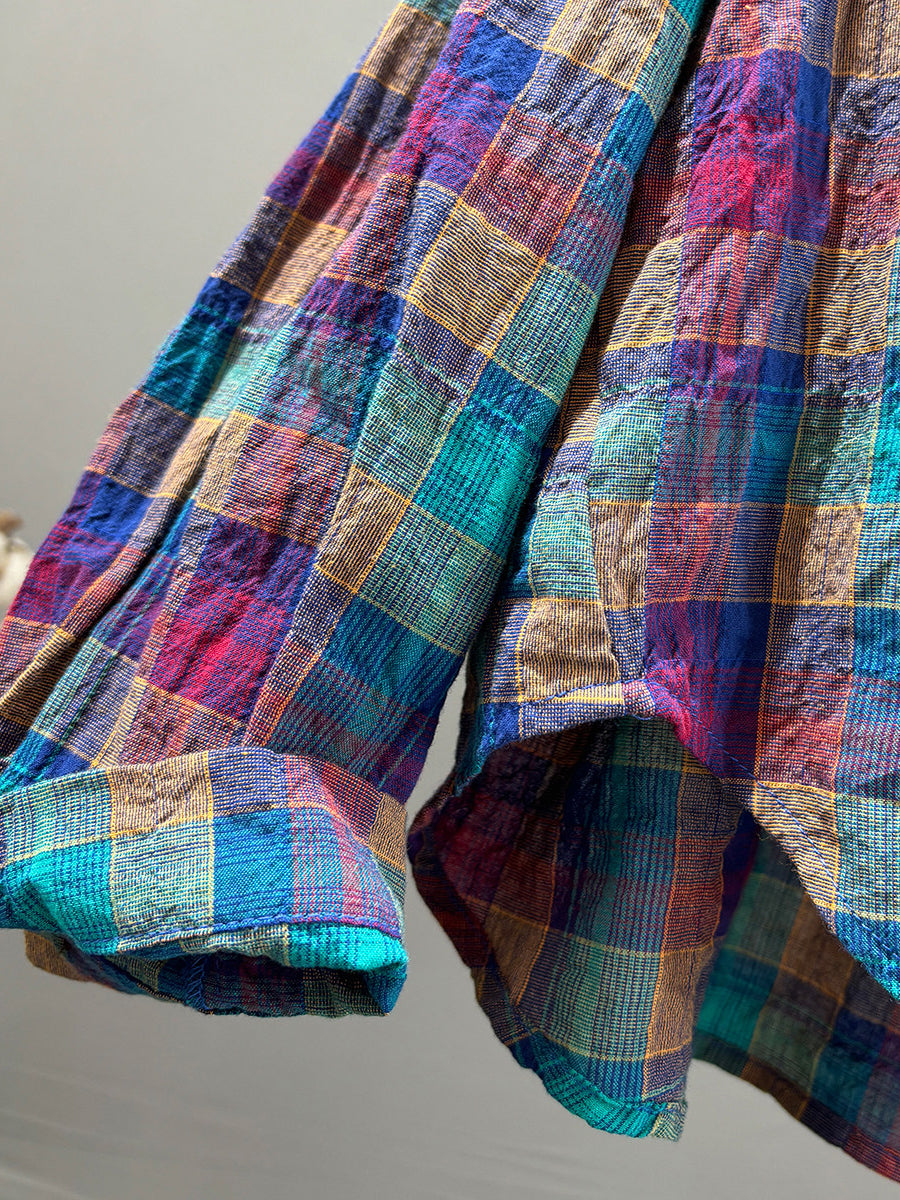 Kunstnerisk forårsfarvet ternet bomuldsskjorte til kvinder
