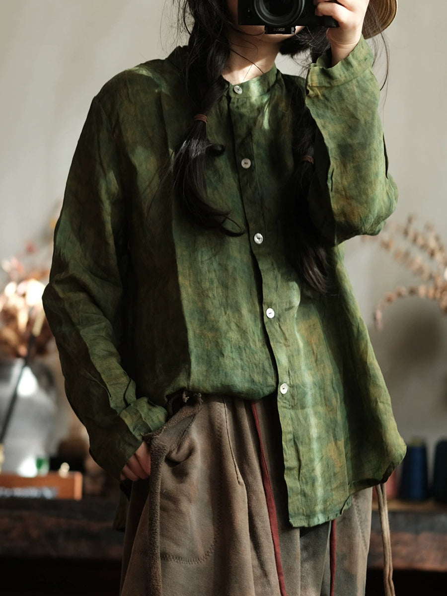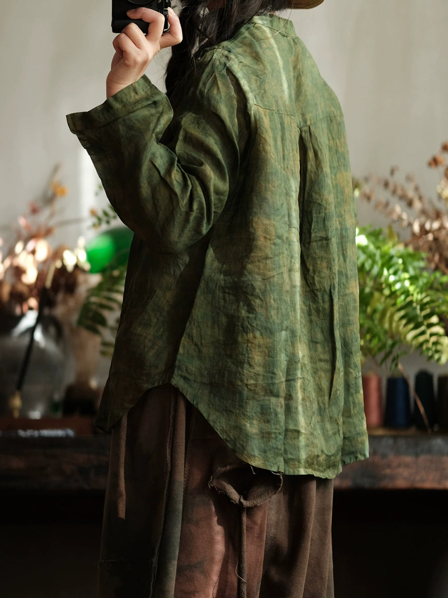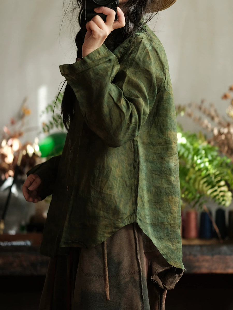 Retro forårsskjorte med batikfarvet ramie-print til kvinder