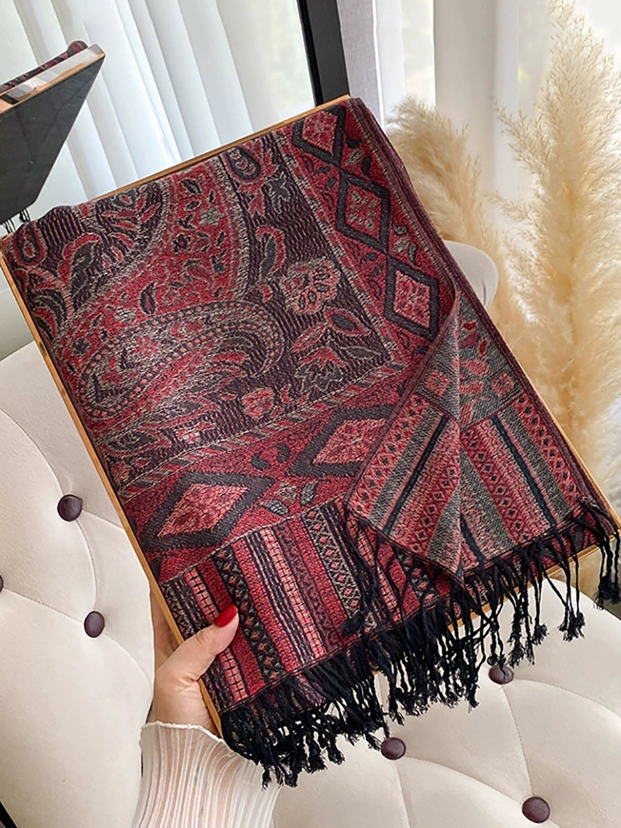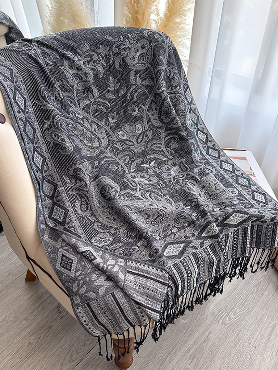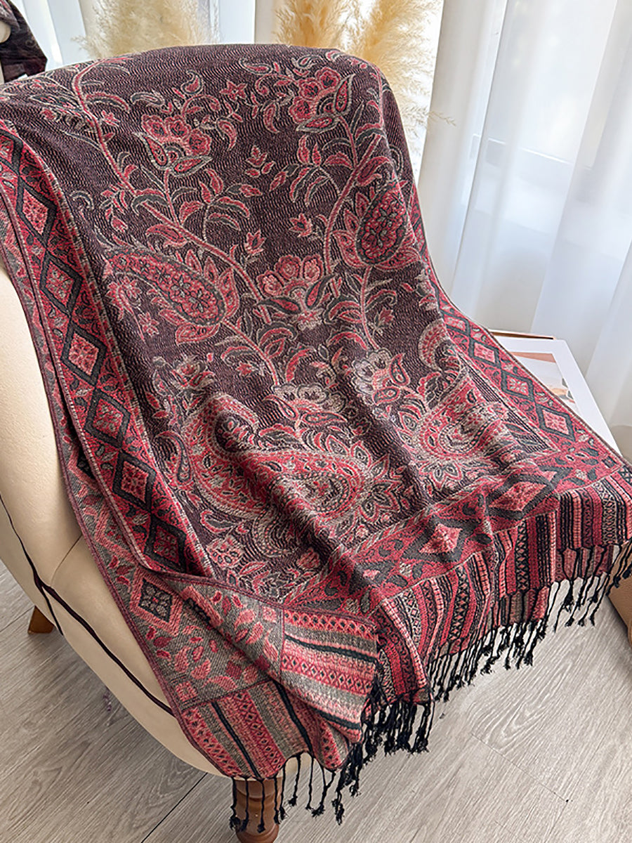Kvinder Vinterblomst Jacquard Tassel Sjal Halstørklæde