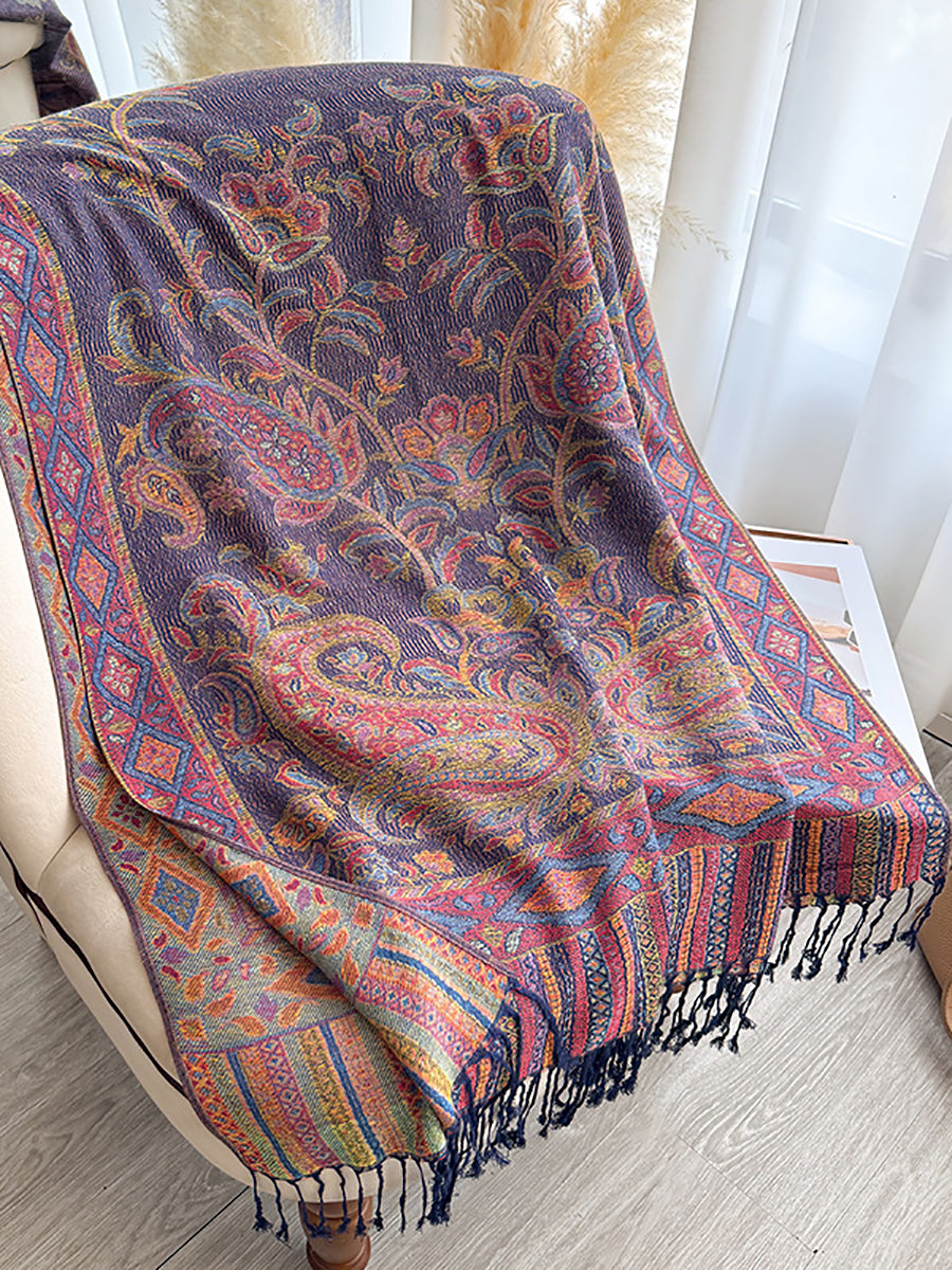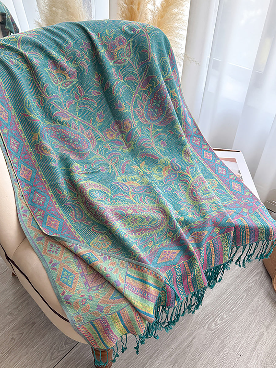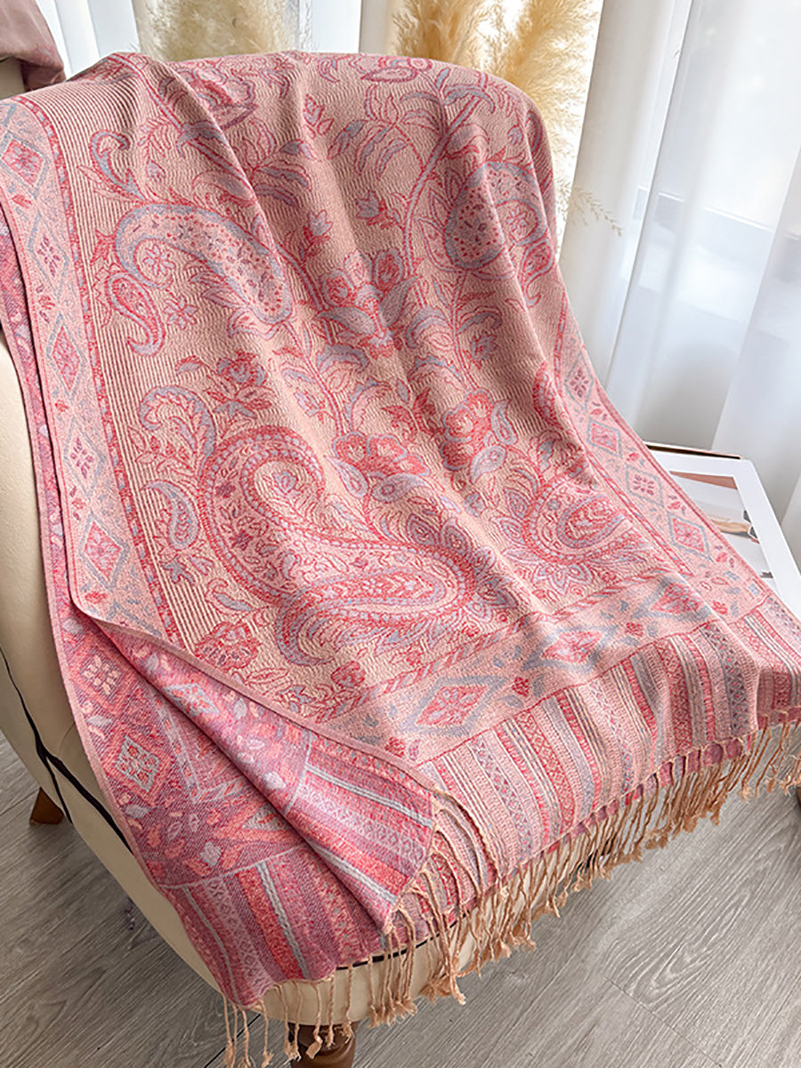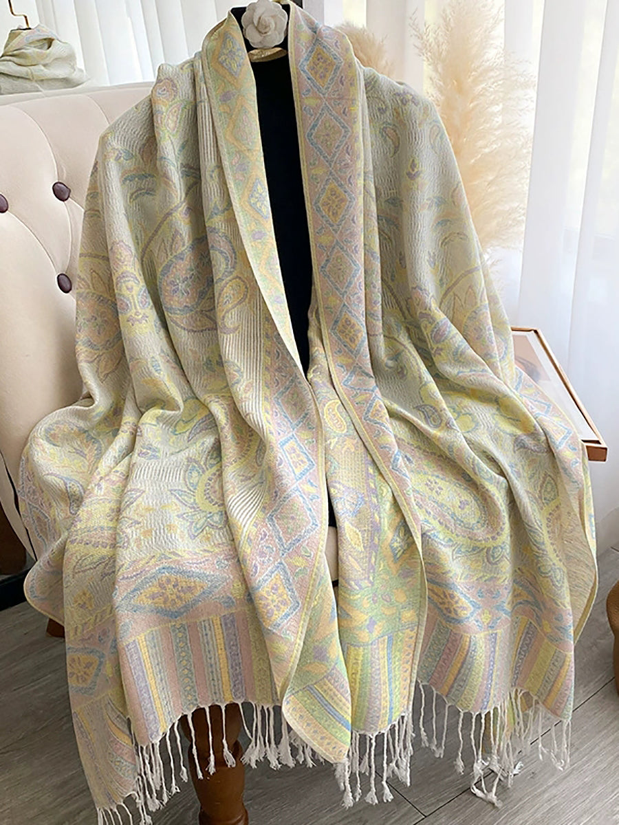 Kvinder Vinterblomst Jacquard Tassel Sjal Halstørklæde