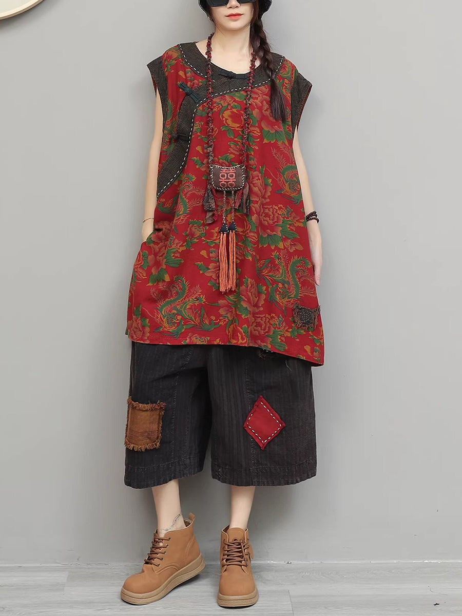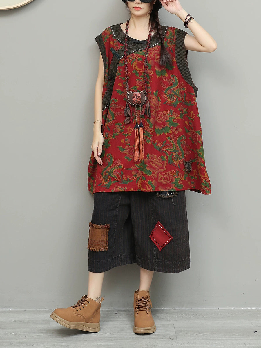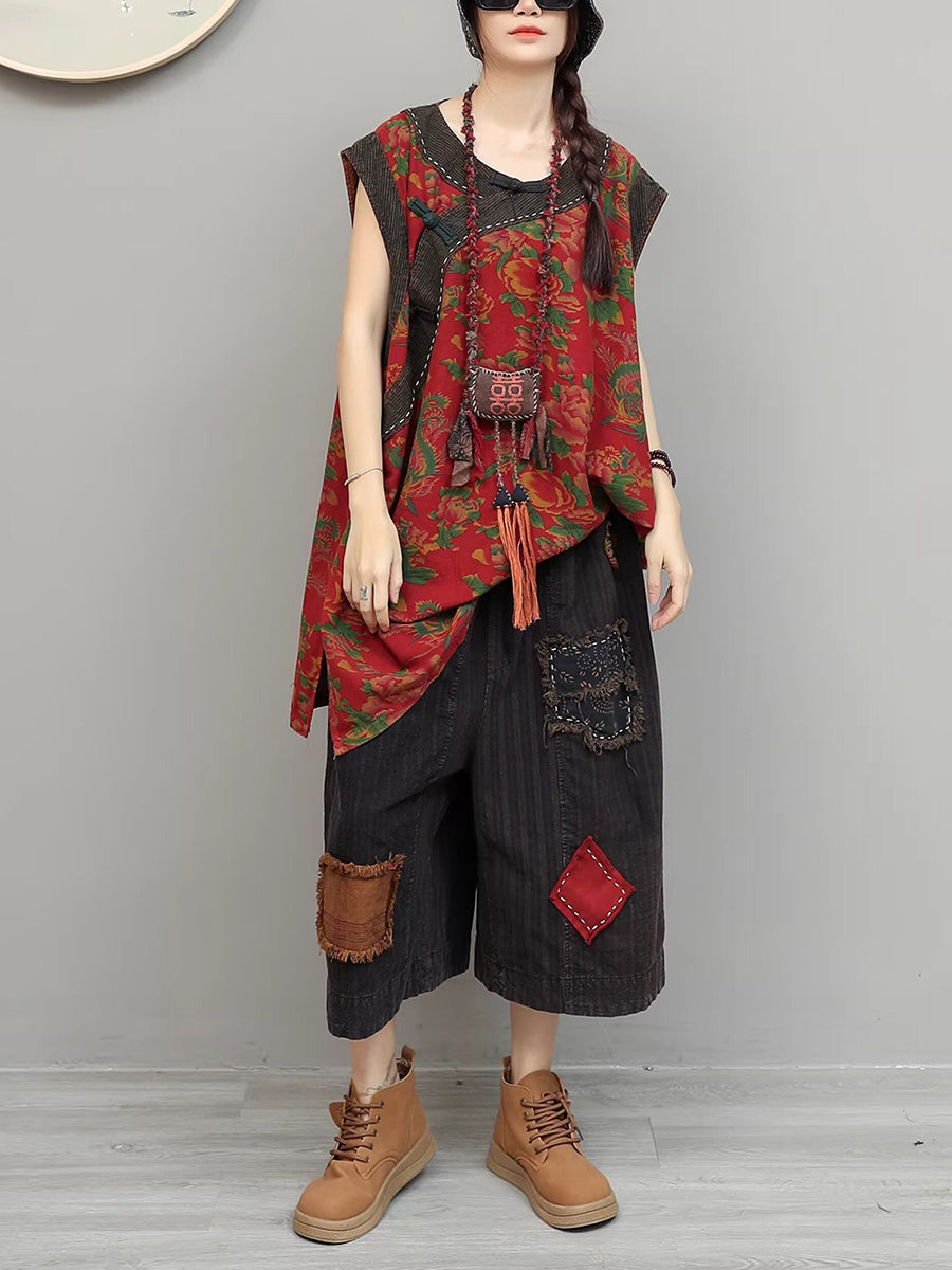 Kvinder Sommer Retro Blomster Patchwork Jakkesæt