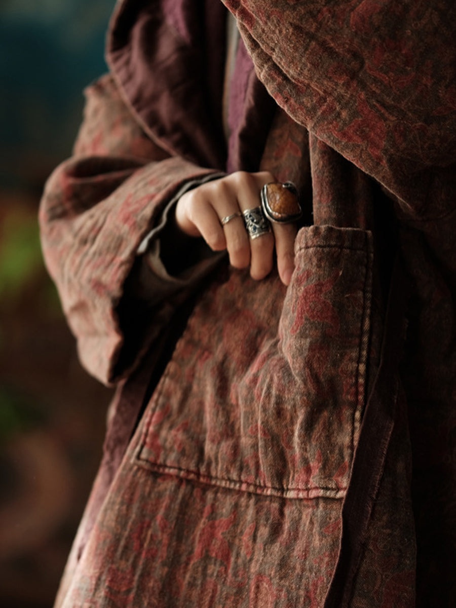 Kvinder Vinterfrakke med etnisk print og hætte i bomuld