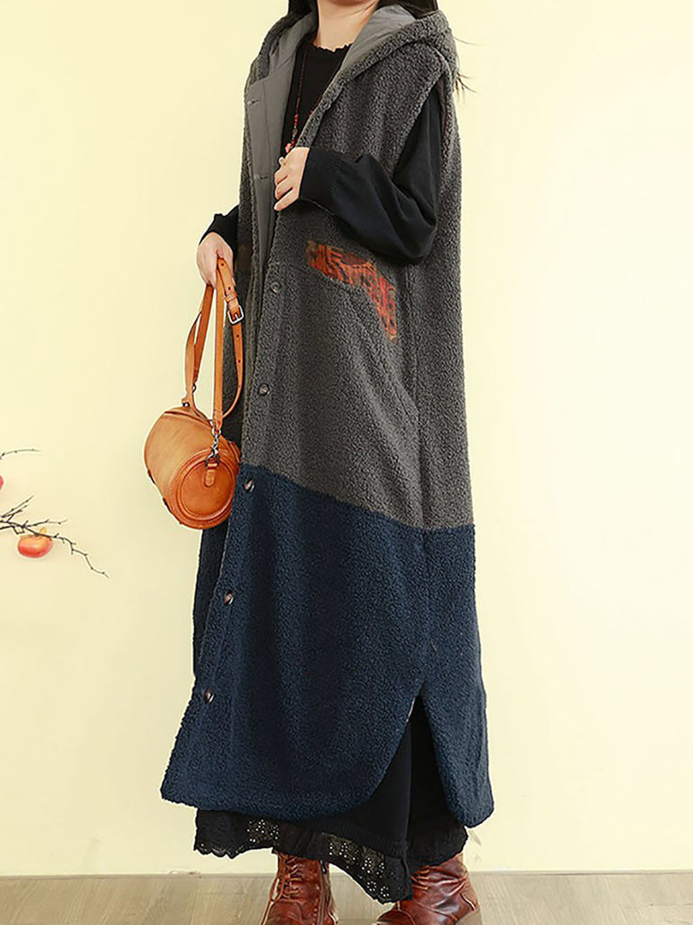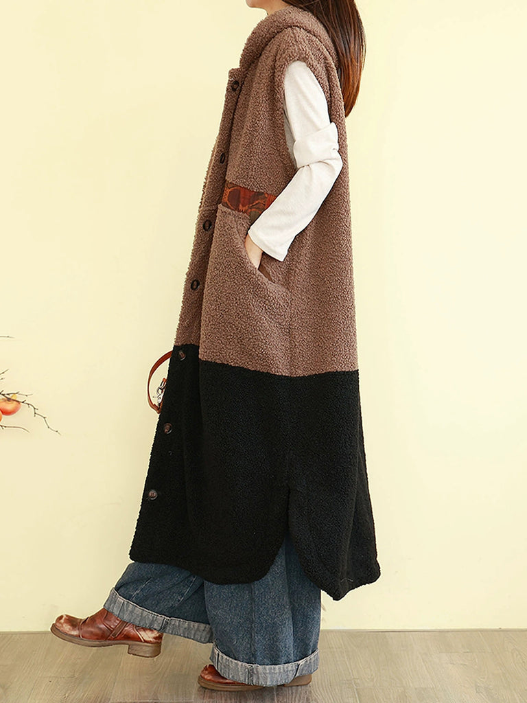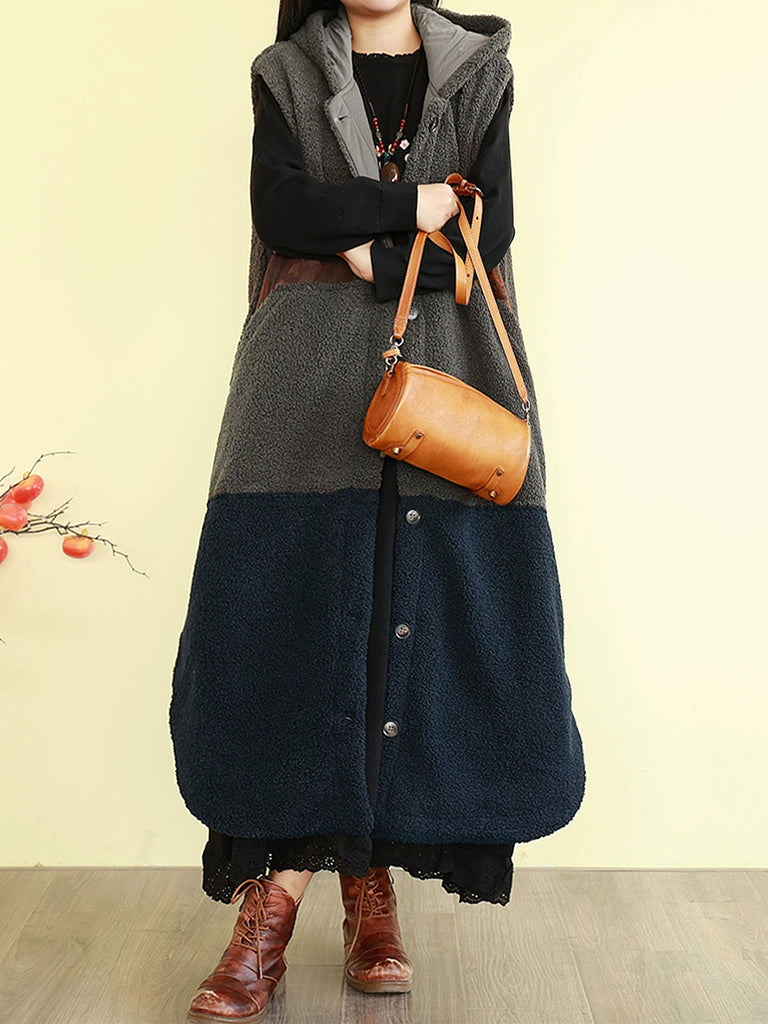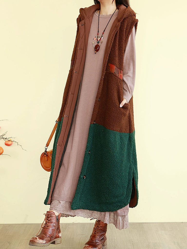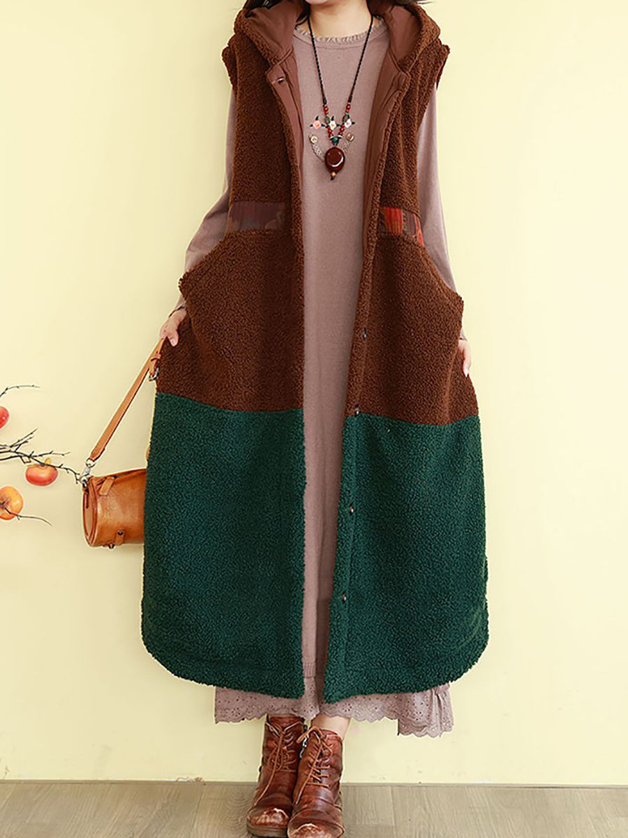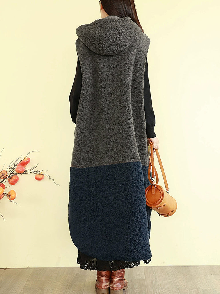 Kvinder Vinter Fleece Colorblock Hættetrøje med Polstret Vest