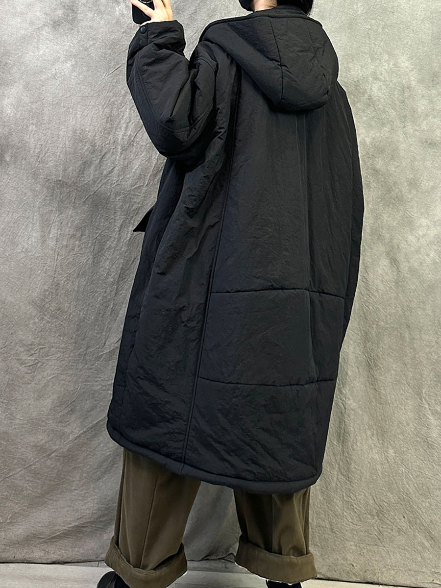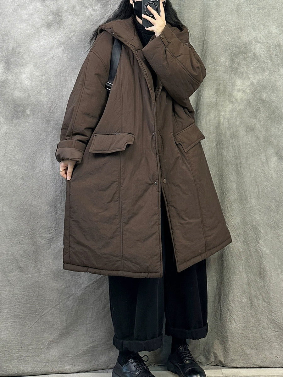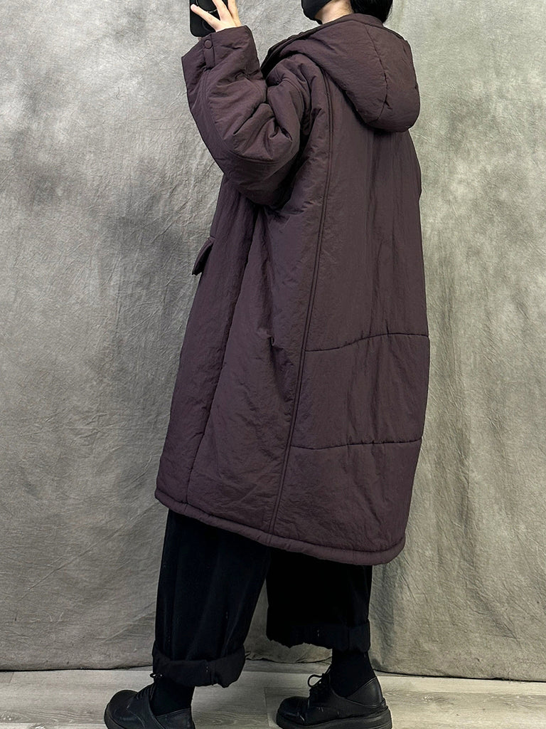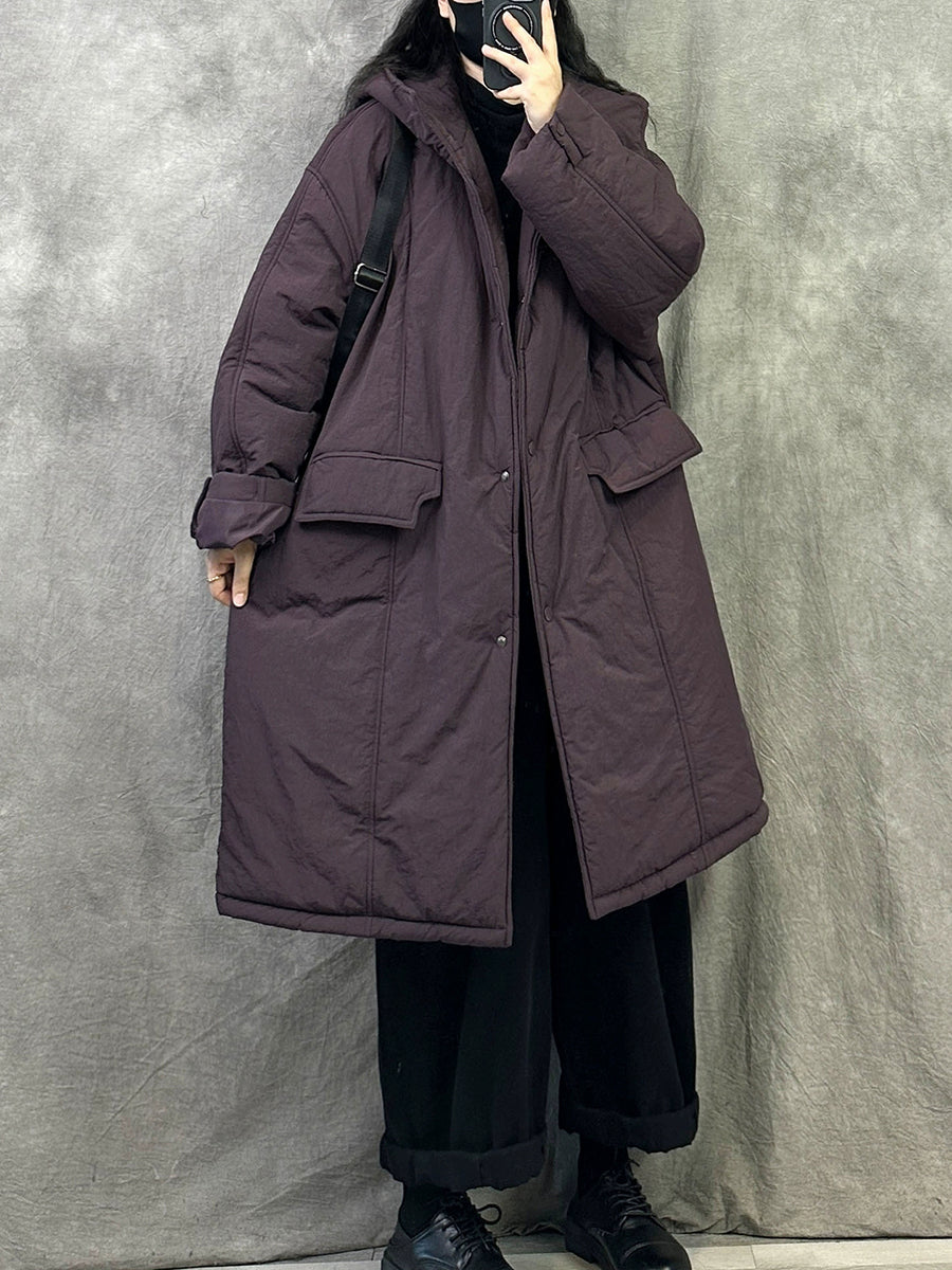 Kvinder Vinter Ren Farve Polstret Hættetrøje Lang