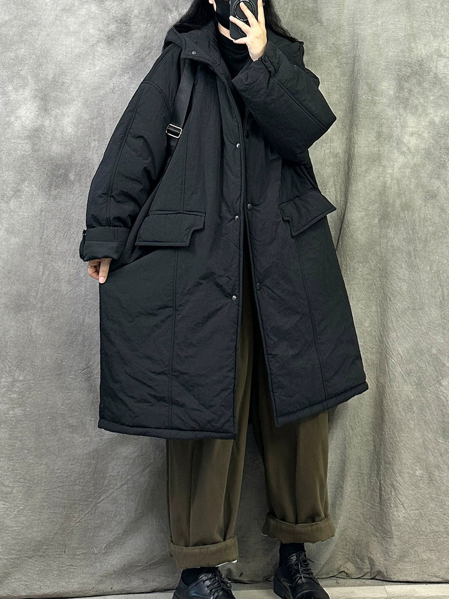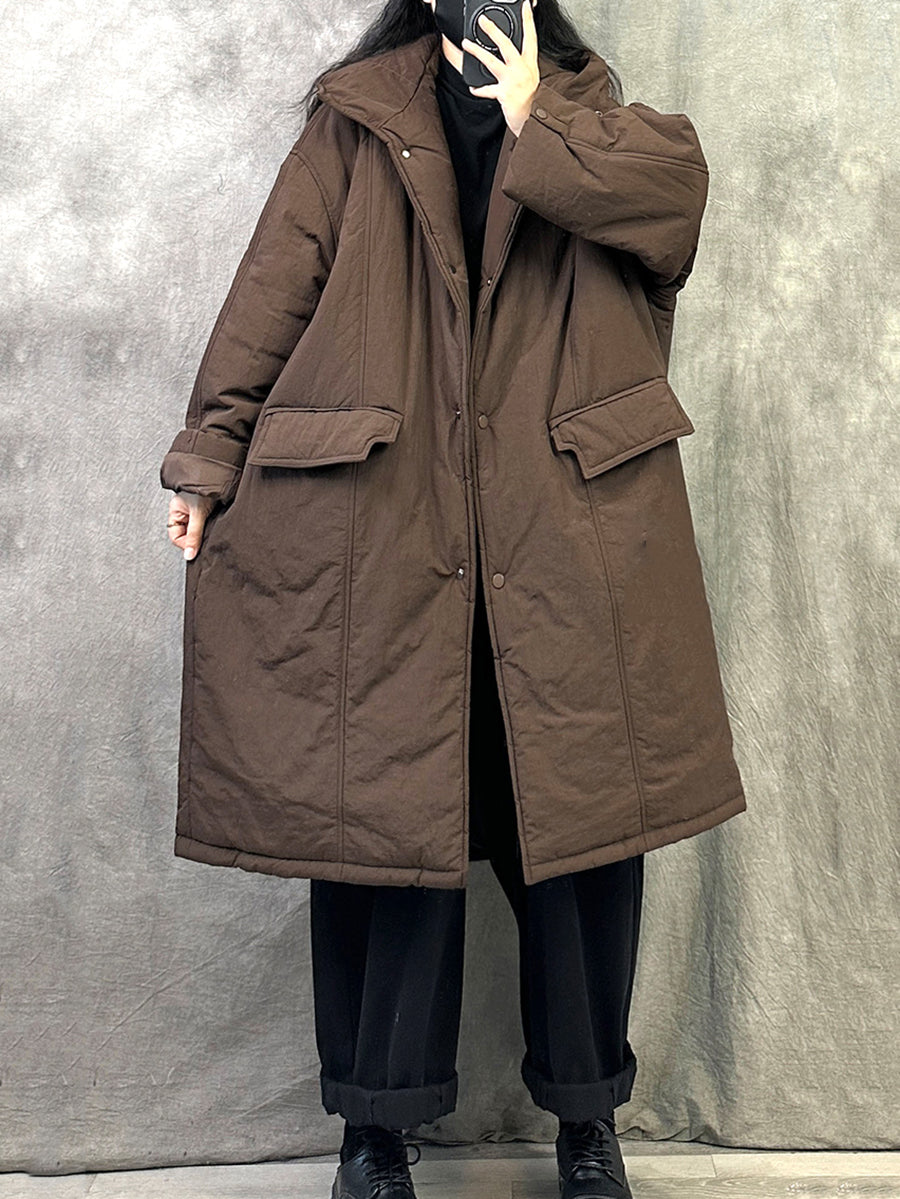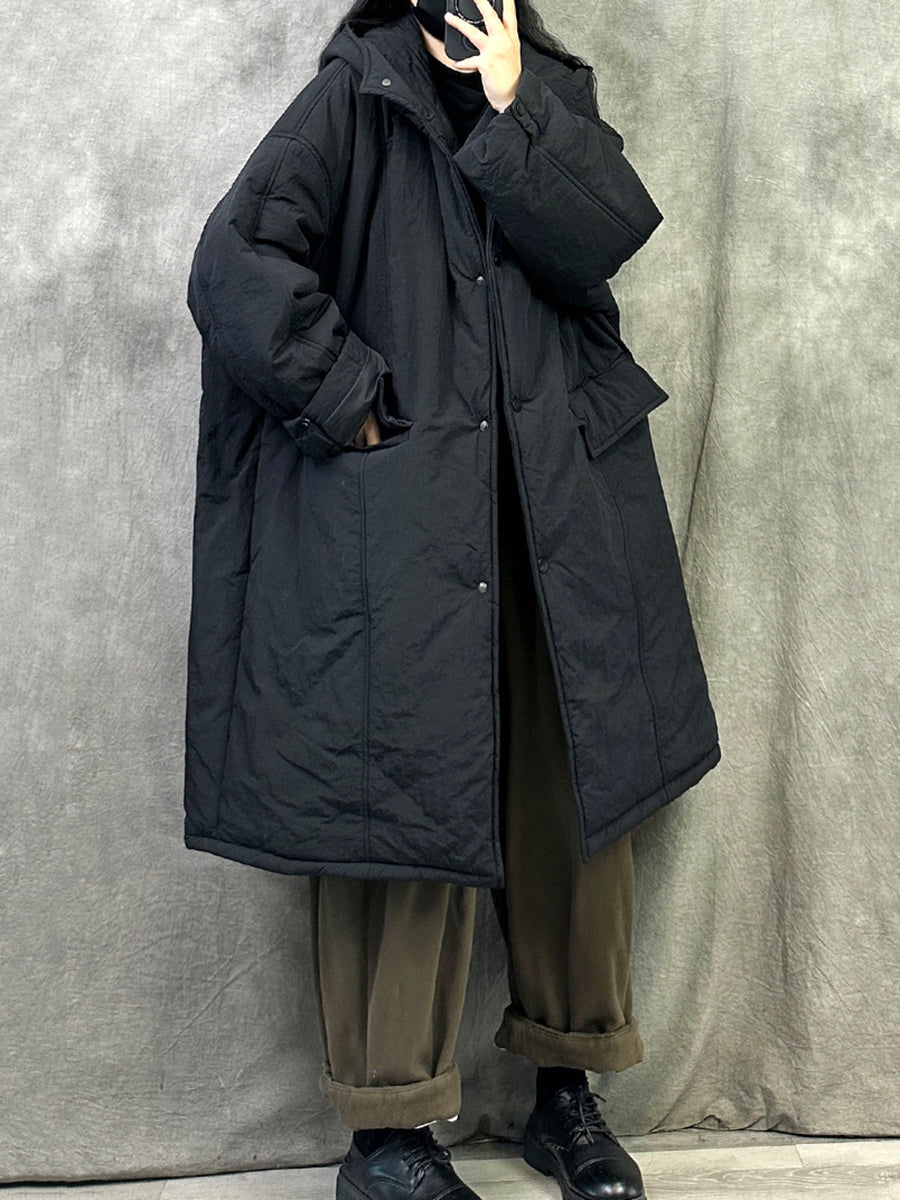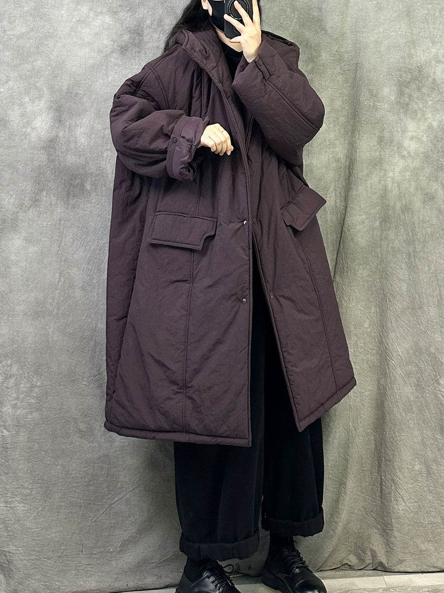 Kvinder Vinter Ren Farve Polstret Hættetrøje Lang