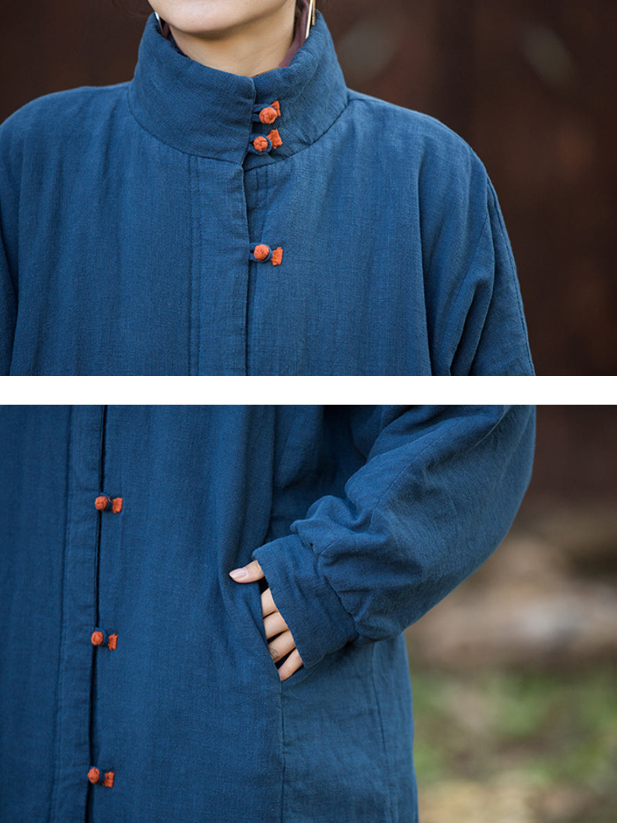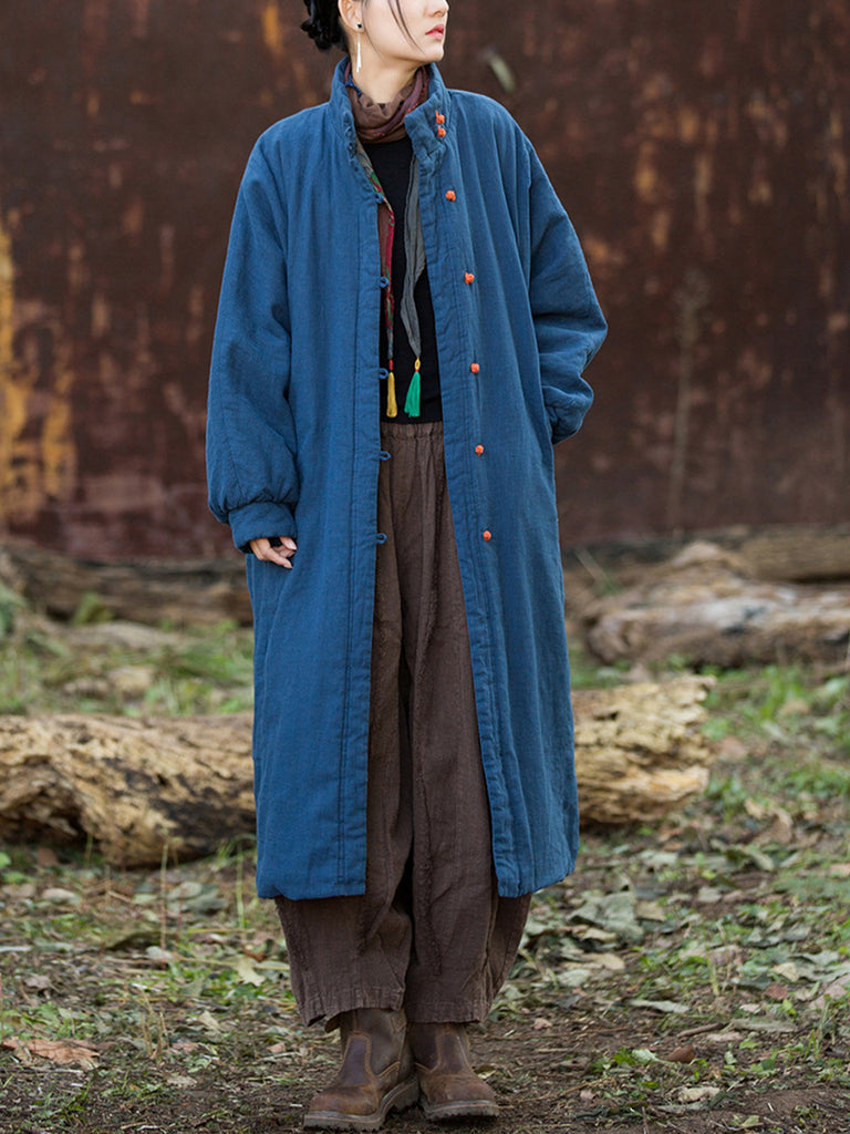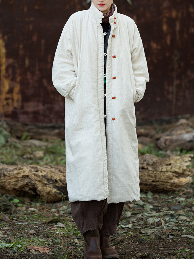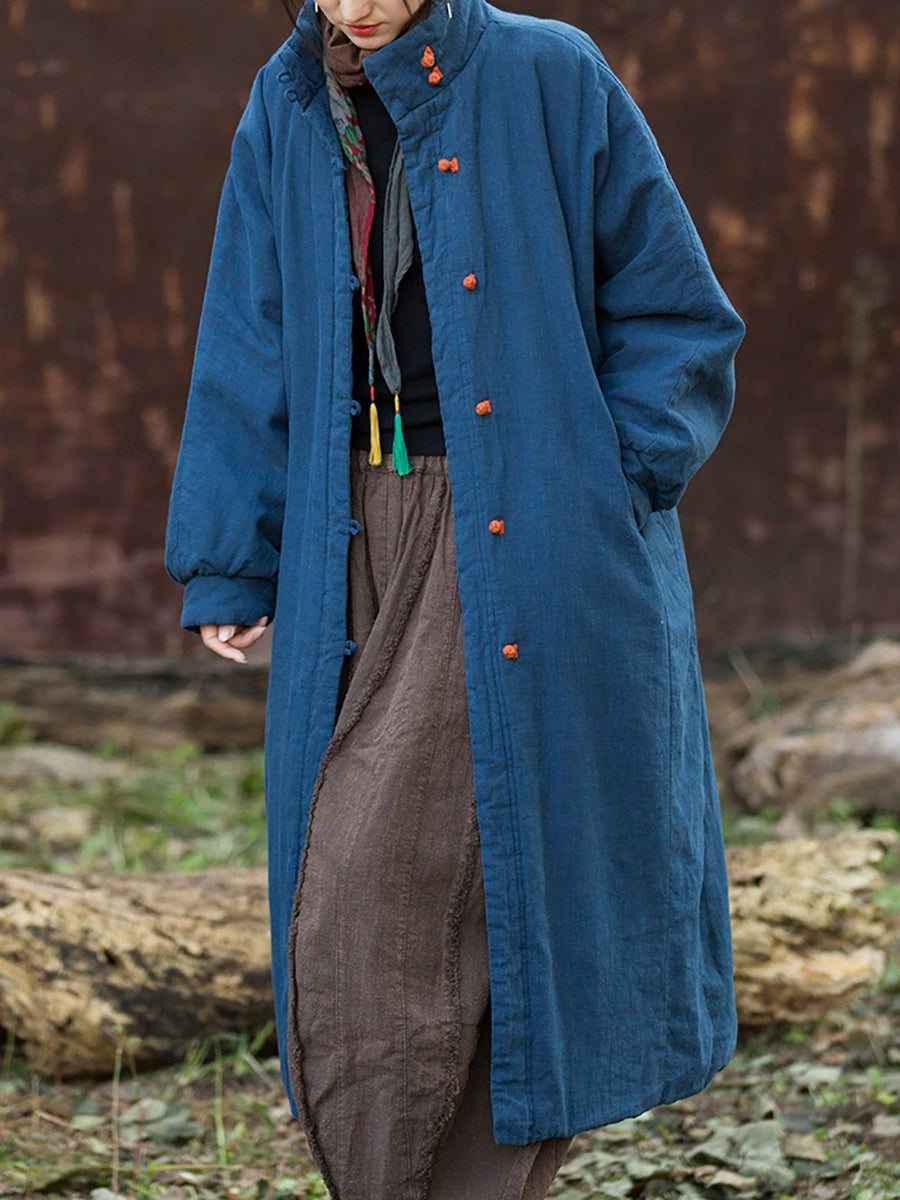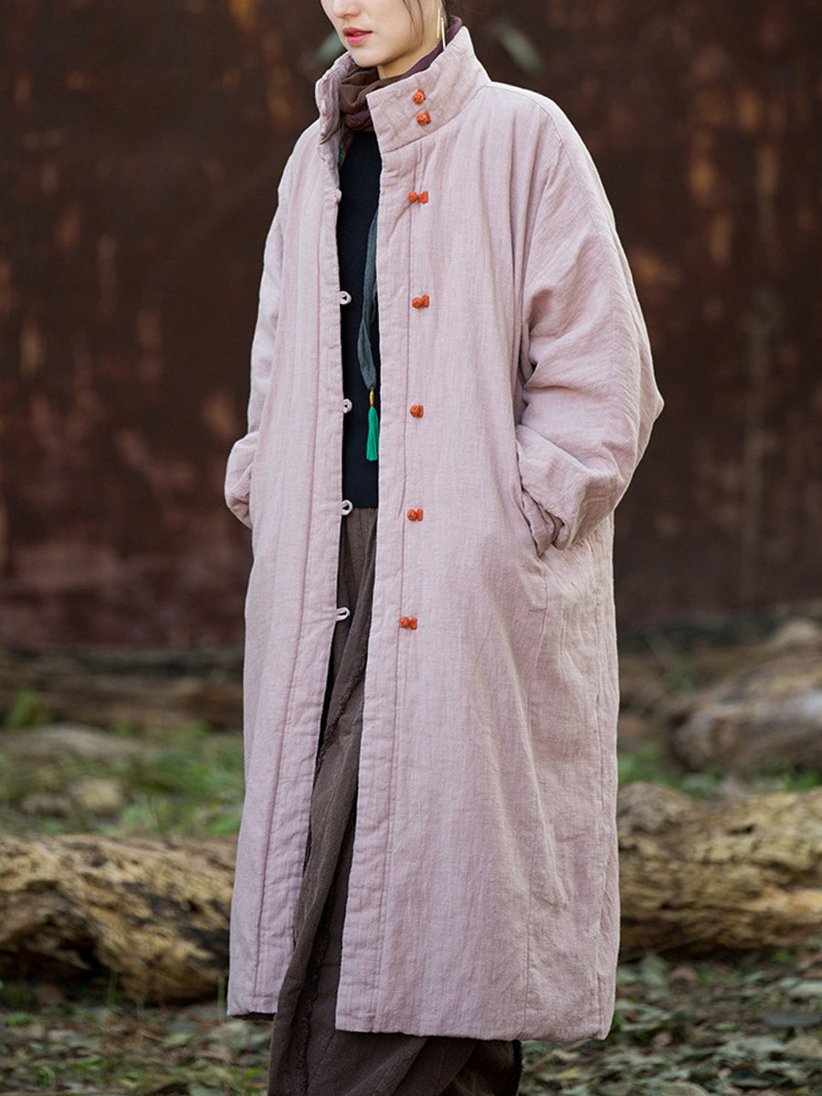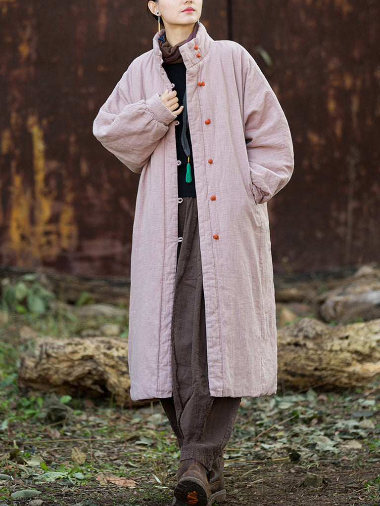 Kvinder Vinter Ren Farve Stand Collar Polstret Overfrakke