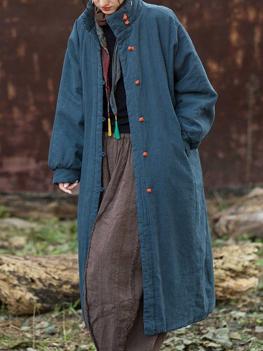 Kvinder Vinter Ren Farve Stand Collar Polstret Overfrakke