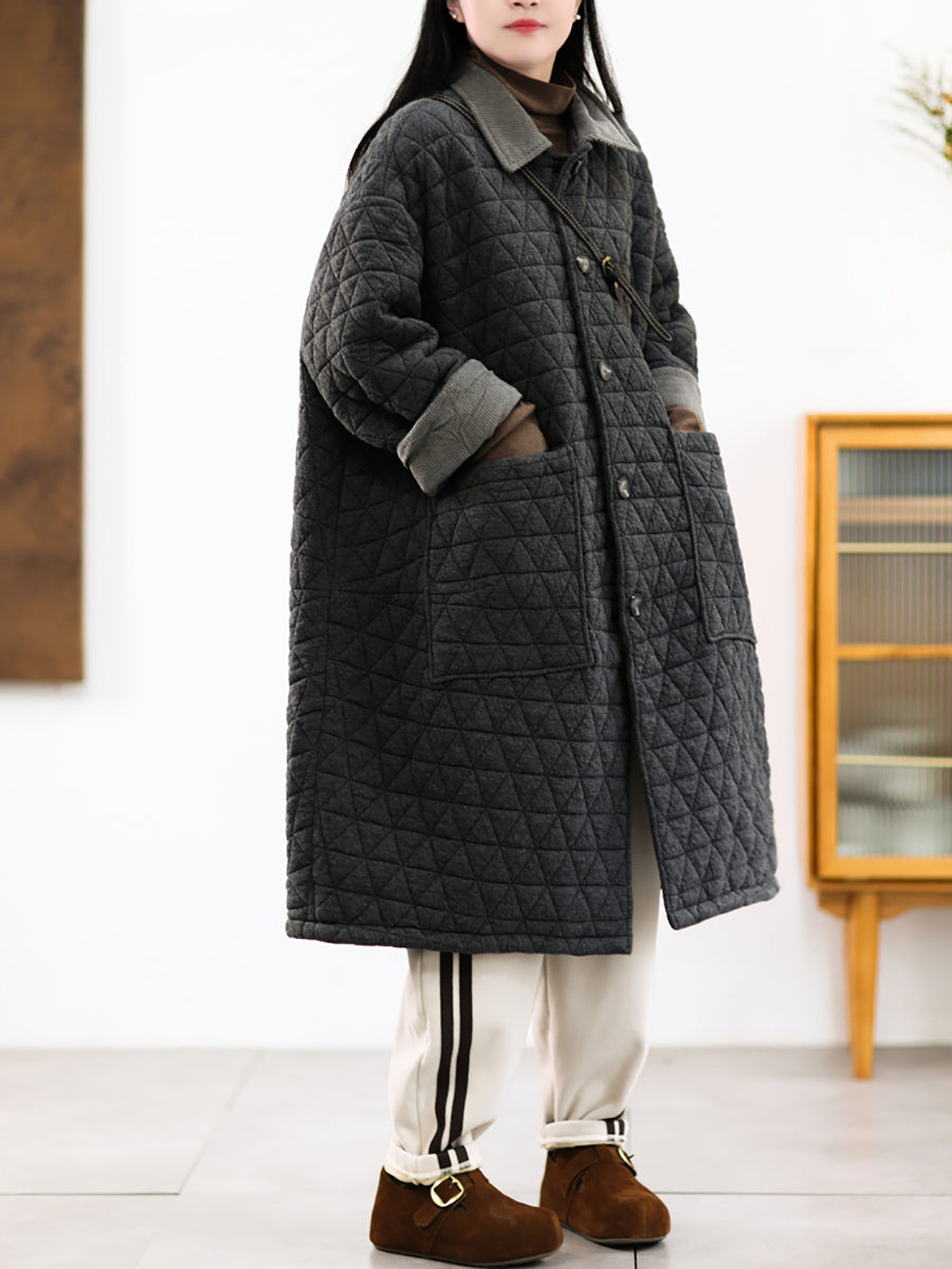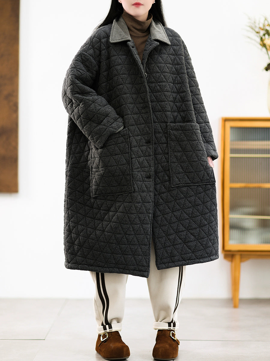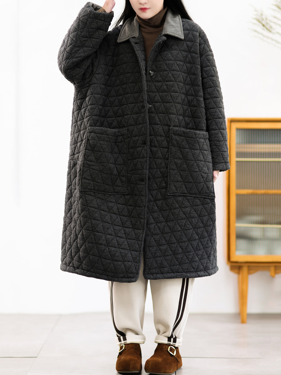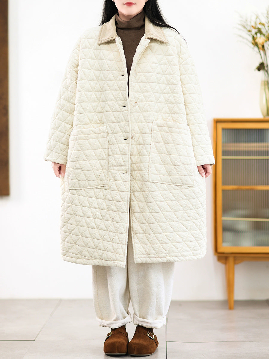 Kvinder Vinter Kunstnerisk Ren Farve Polstret Turn-down Krave Frakke