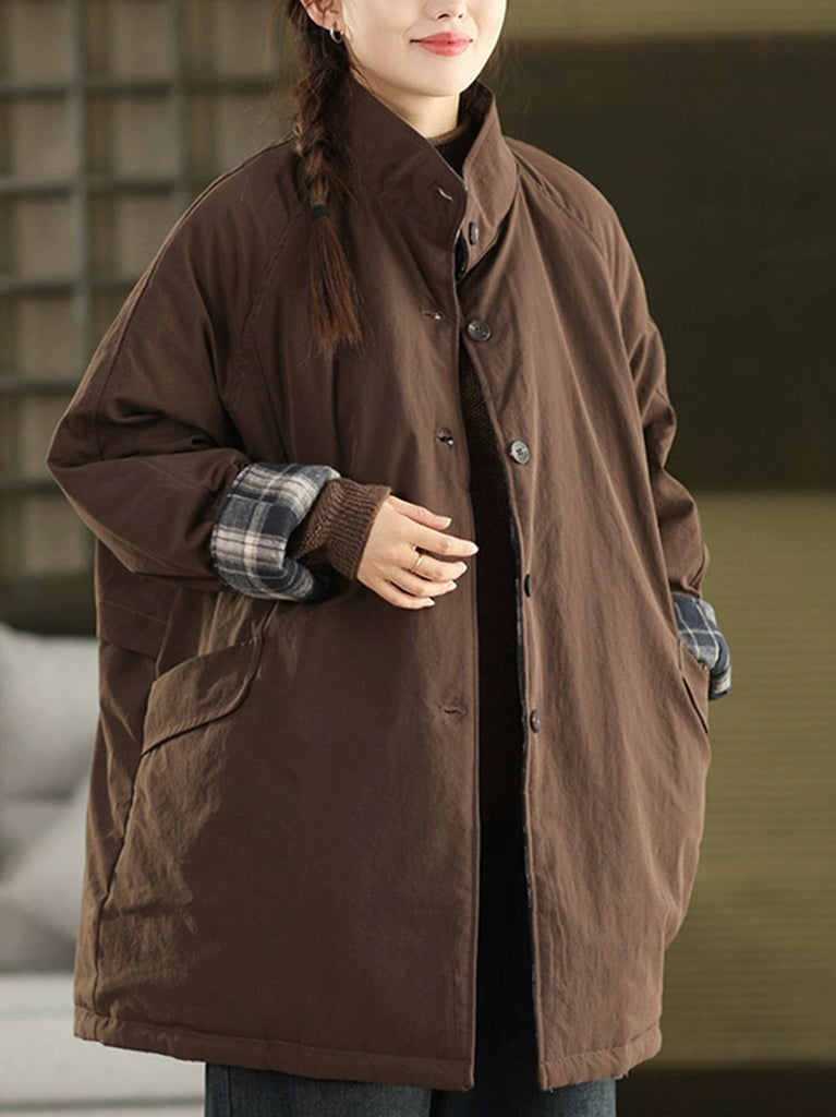 Kvinder Vinter Retro Ren Farve Hør Polstret Frakke