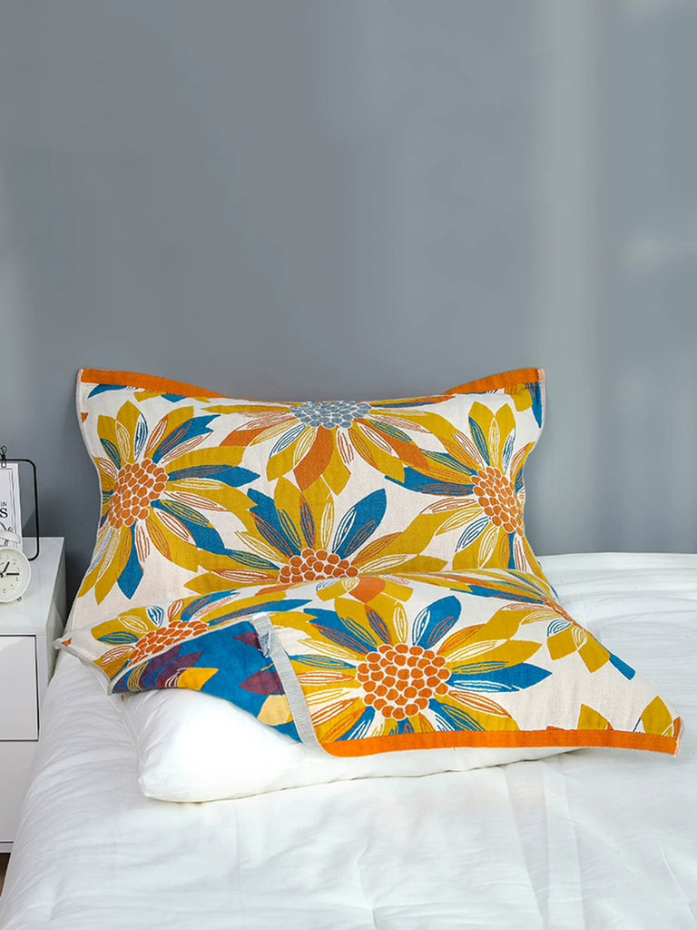 2 stk. bomuldspudebetræk med solsikkemotiv, blødt og svedabsorberende