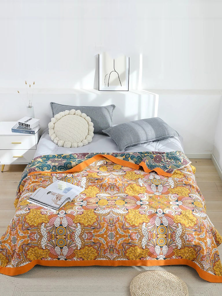 100% bomuldsblomst sengetæppe til voksne, sofatæppe