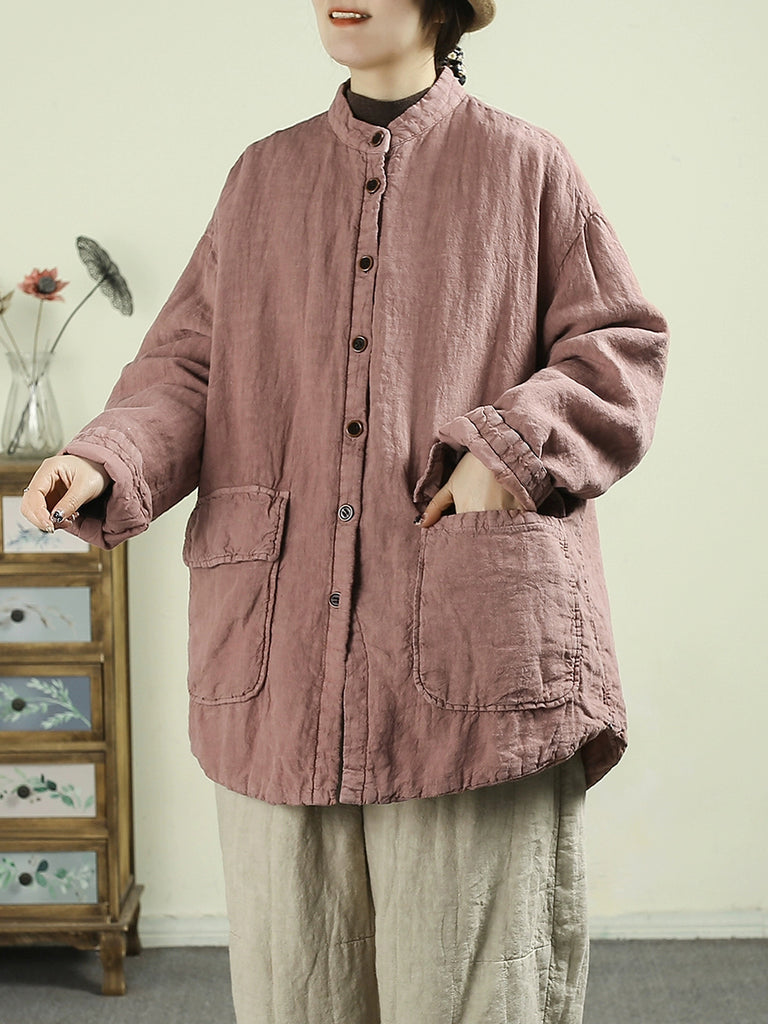 Kvinder Vinter Retro 100% Hør Fleece Spliced Polstret Frakke
